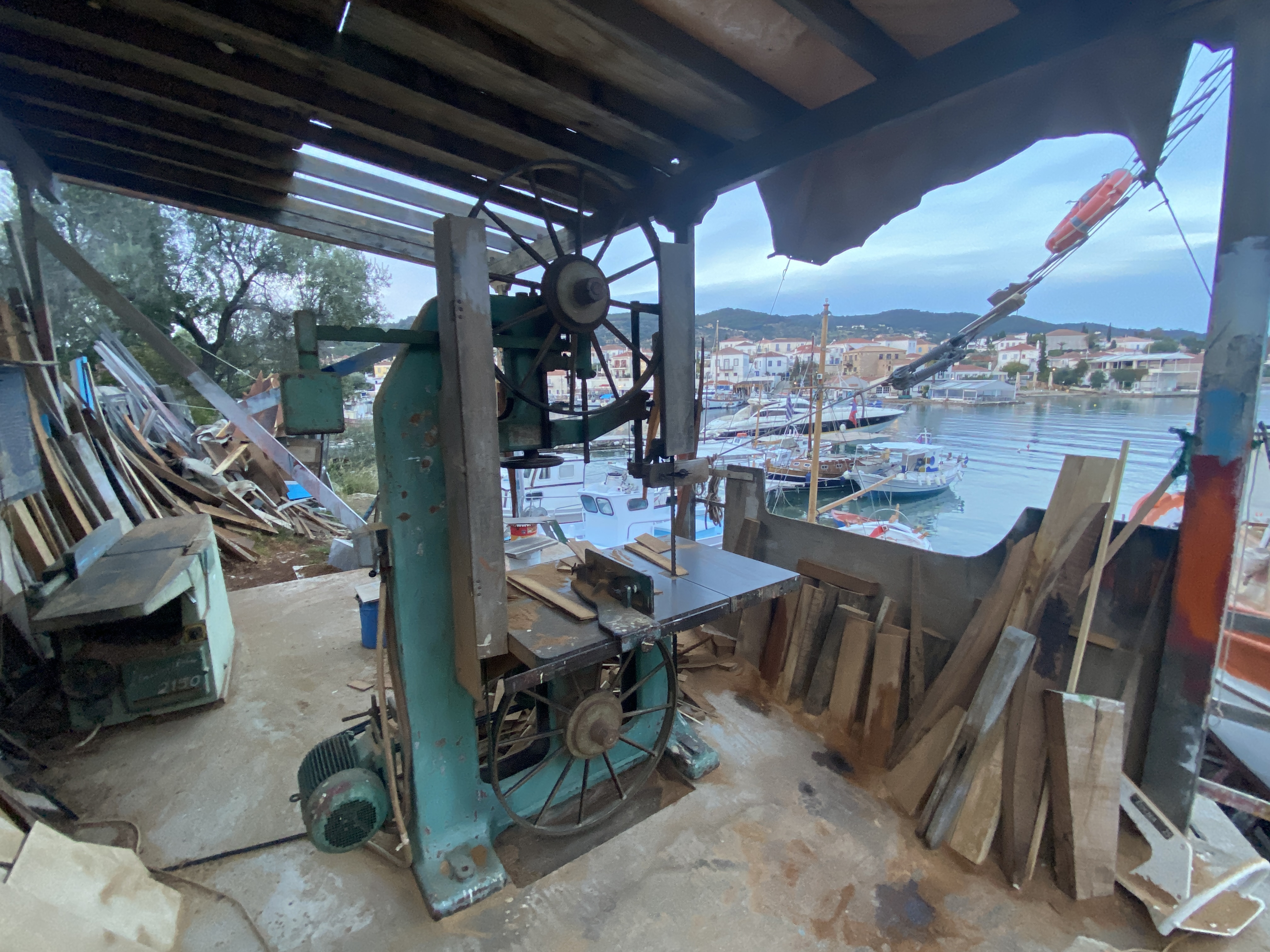 Я насчитал три верфи на этом берегу. Характерная отличительная черта – ленточная пила, для выпиливания штук набора.