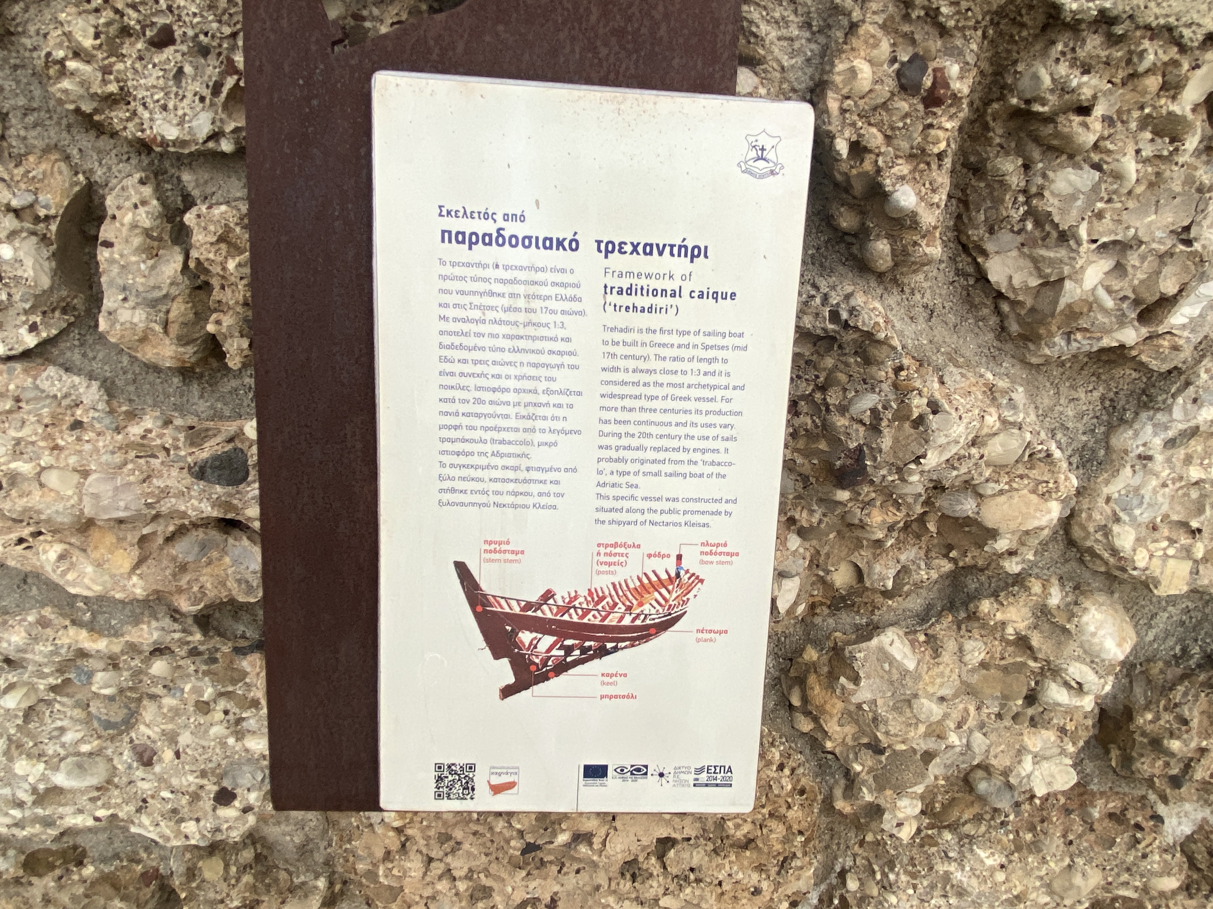 Тропа обозначена вот такими железными столбиками с QR-кодами. Удобно. Греки тоже поняли, что свой традиционный флот нужно беречь. Правда, они сначала его весь почти утилизировали в рамках борьбы с переловом рыбы. Под эгидой Евросоюза была недавно такая компания. Тоже молодцы.