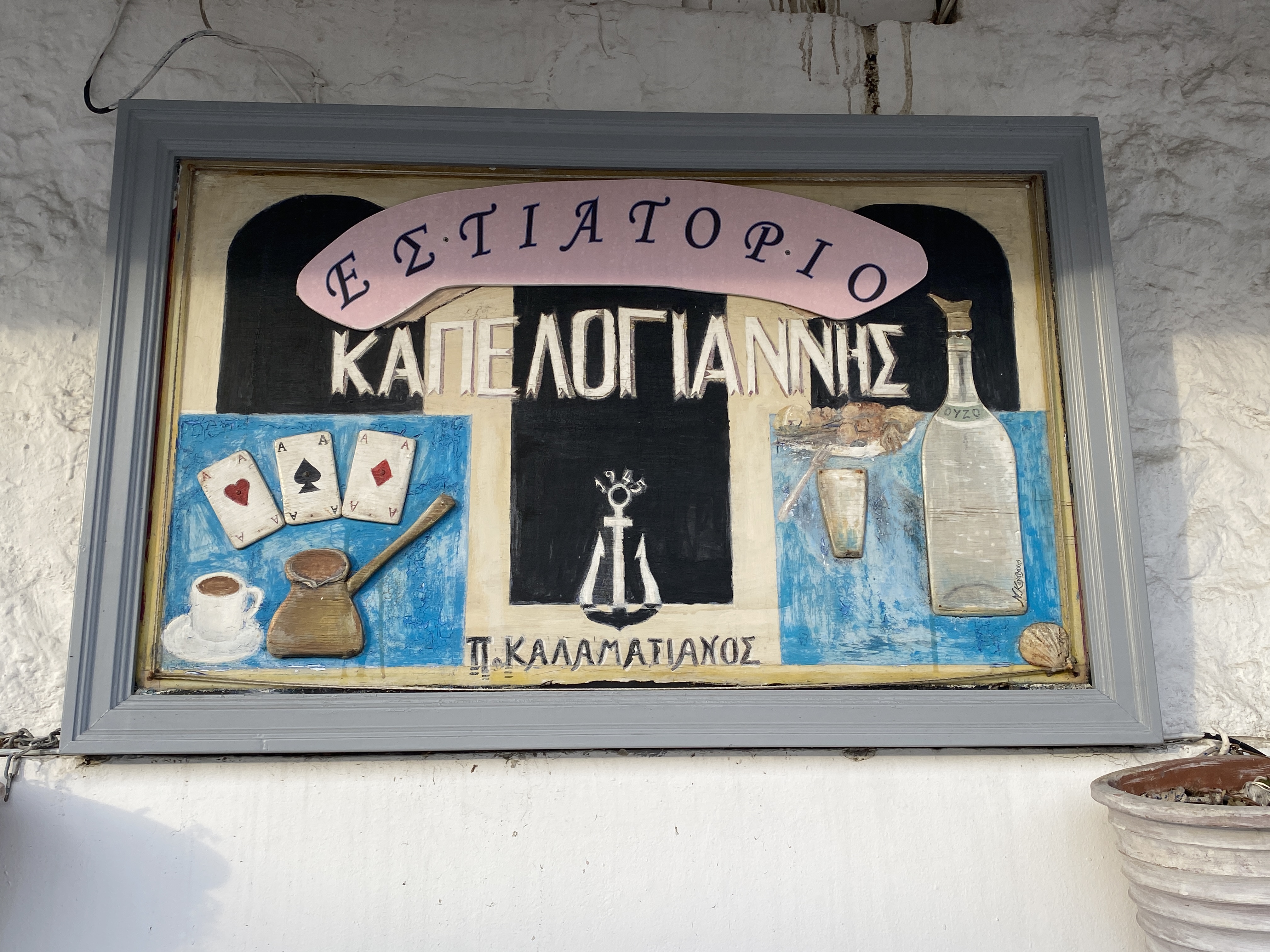 Вечером ужинали в деревенском ресторанчике. Я уже давно про это мечтал: железная печка пахнет дымом и дровами, плетеные стулья с картин Ван Гога, сыр, вино. Красивые женщины выглядят так, как будто пережили большую трагедию, мужчины тоже чем-то обескуражены, но веселятся. Небольшая компания греков на совсем небольшом острове. Теплая ночь. Мы тоже пьем вино. Нам приносят его в стеклянном кувшине, похожем на стекло из химической лаборатории. Мы разливаем его по стаканам, пьем, пьянеем и нам хорошо. Даже Андрей оставил свои глупости и просит ему налить второй стакан.