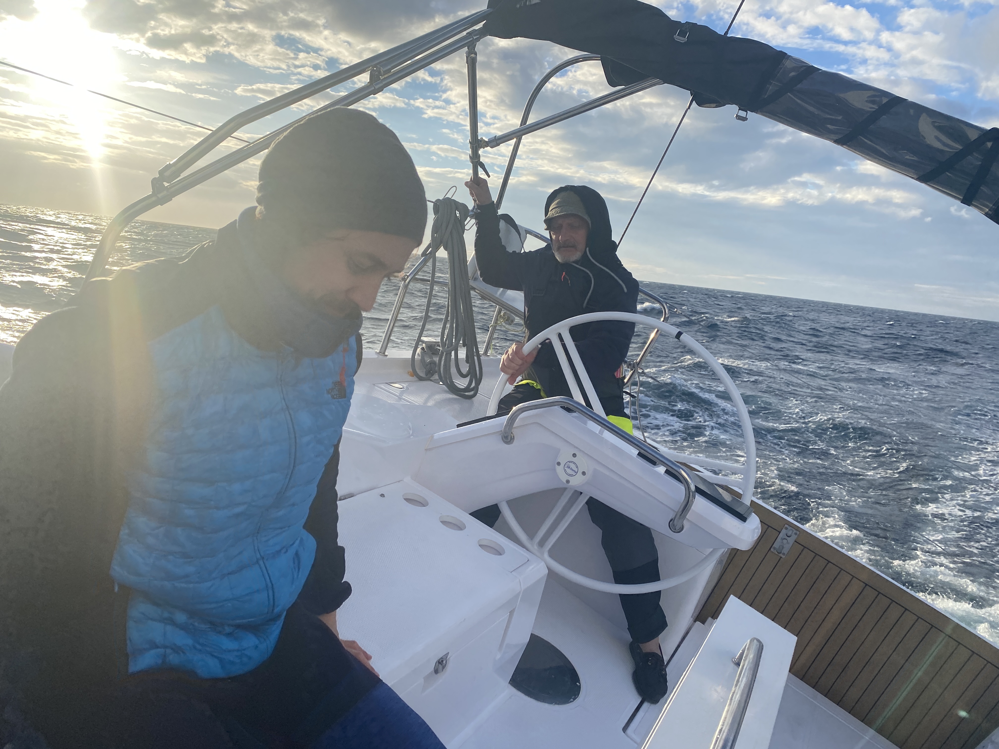 2225, ветер 14 узлов. Идем под парусом 7,5 узла.