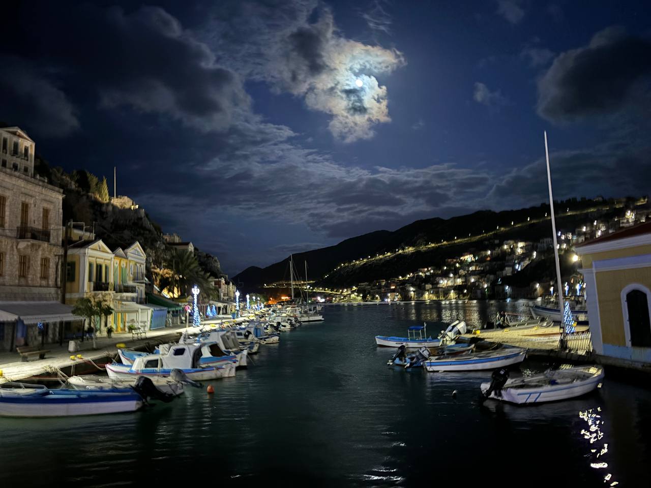 07:00, встали на якорь на западной оконечности Сими в бухте Аимиланос рядом с крохотным монастырем. Нашли боцманскую беседку и свободный фал.