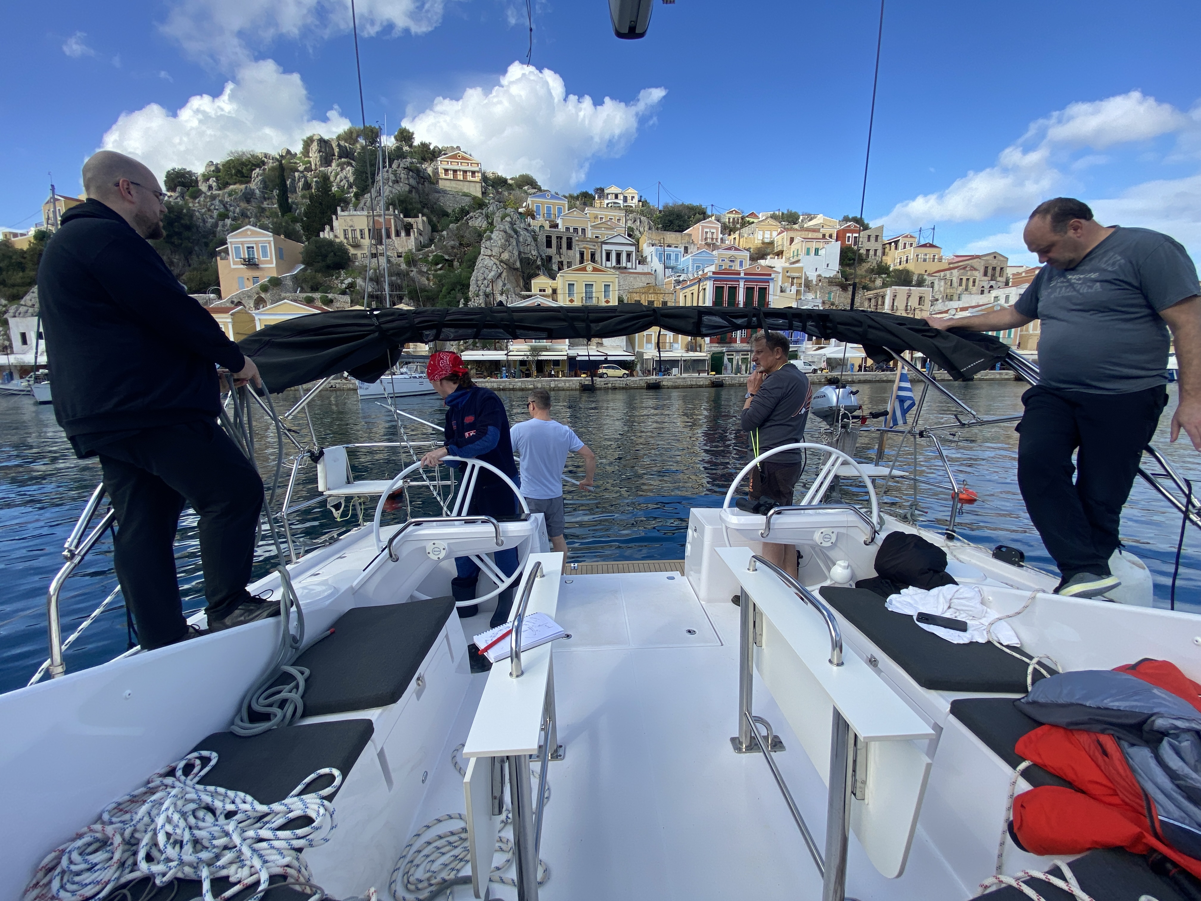 Продолжаем учебное плавание на лодке «Елена» (Elan 43) теперь в обратную сторону — с Родоса в Афины. На борту команда: Илья Кривополенов, Павел Хазанов, Андрей Максименко, Александр Горожанцев, Никита Карбасов, Анастасия Михайлова, Антон Михеев и Евгений Шкаруба.