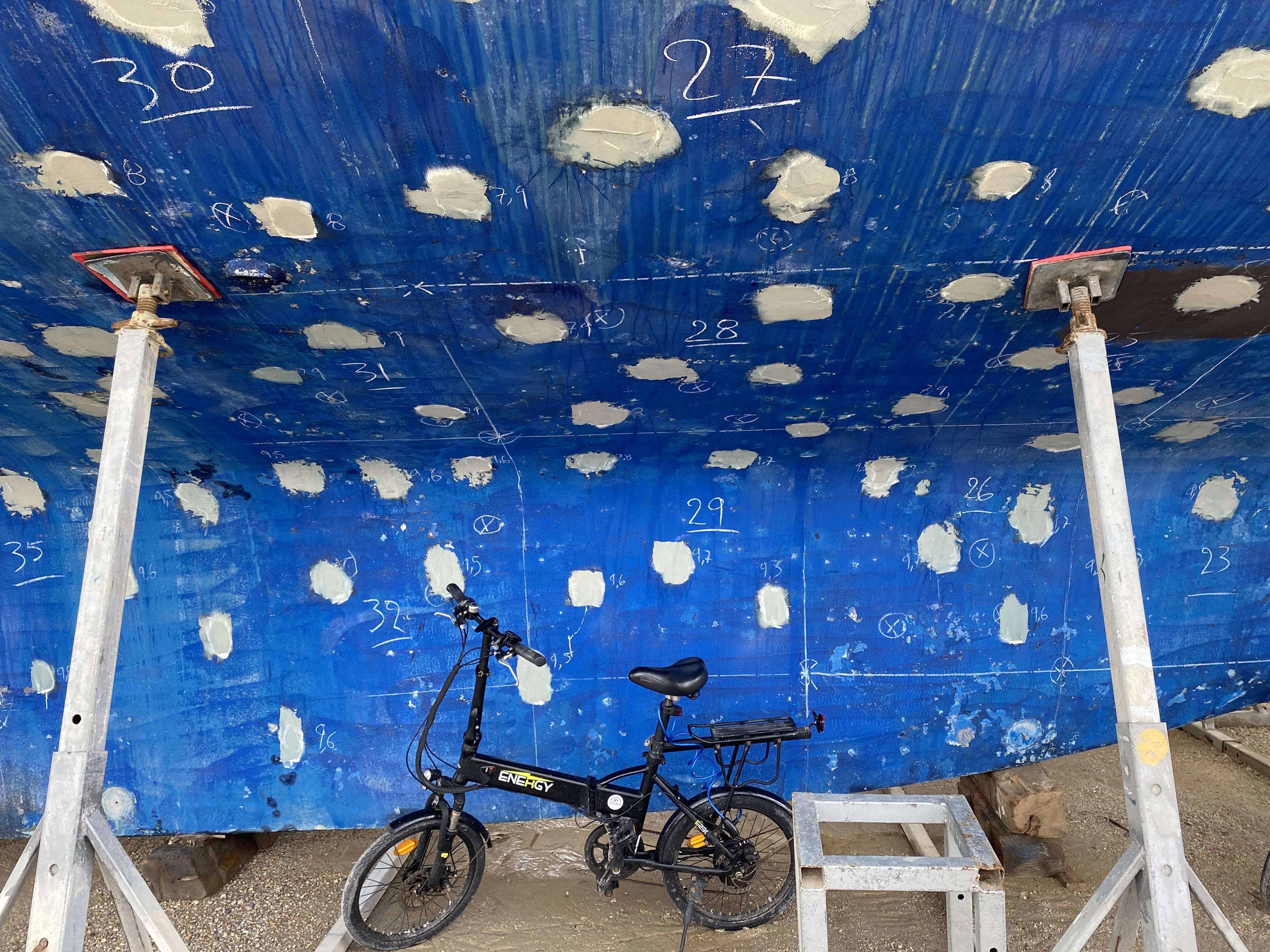 Утром учились, ремонтировались, покупали вино. А главное — гуляли по стоянке лодок на берегу. Чувство необыкновенное: лодочки, приподнятые на кильблоках, стоят ровненько. Якоря и якорные цепи лежат под ними. Солнце светит где-то далеко под облаками, а здесь тень, днище лодок выкрашено в синий цвет необрастайки. Одним словом, как будто гуляешь по дну большой якорной стоянки.