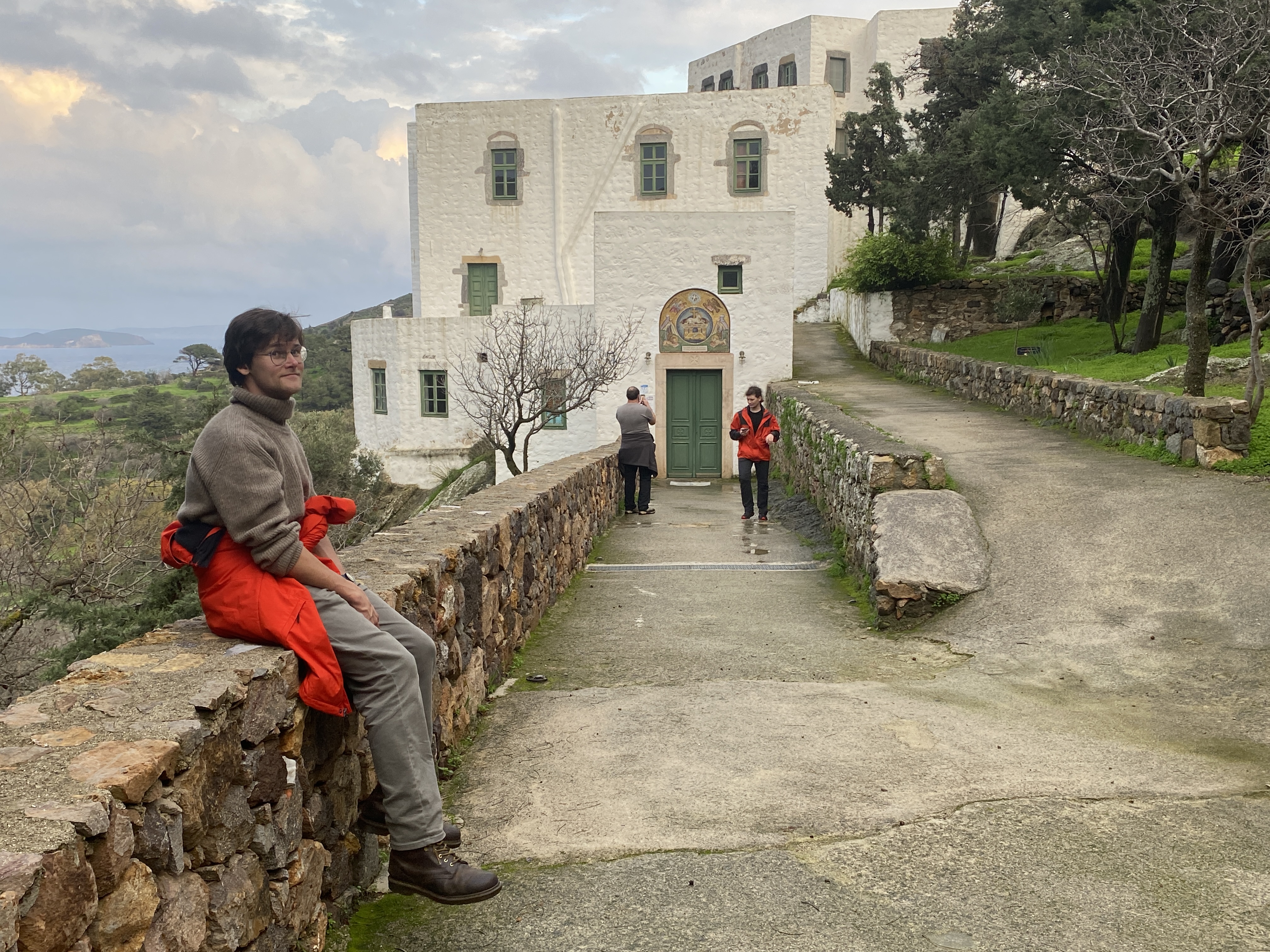 Вечером пришли на Патмос. Здесь приветливо, хотя по-зимнему пустынно. Здесь мы нашли воду и здесь был написан Апокалипсис. Пошли гулять и искать пещеру, в которой апостол Иоанн Богослов писал последнюю книгу Нового Завета.