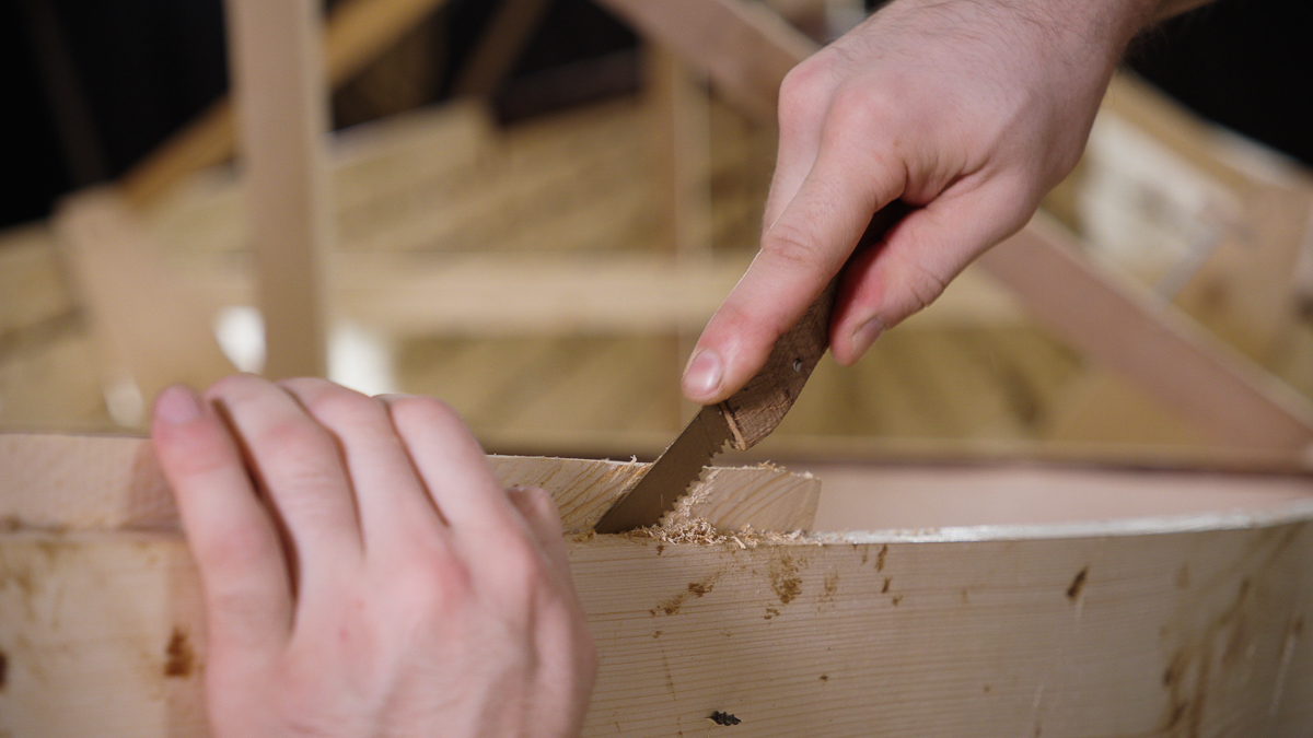 В процессе изготовления детали Иван выполнил множество итераций примерки и подгонки брештука к штевню и бортам — до тех пор, пока не посадил деталь на место (фото 3).