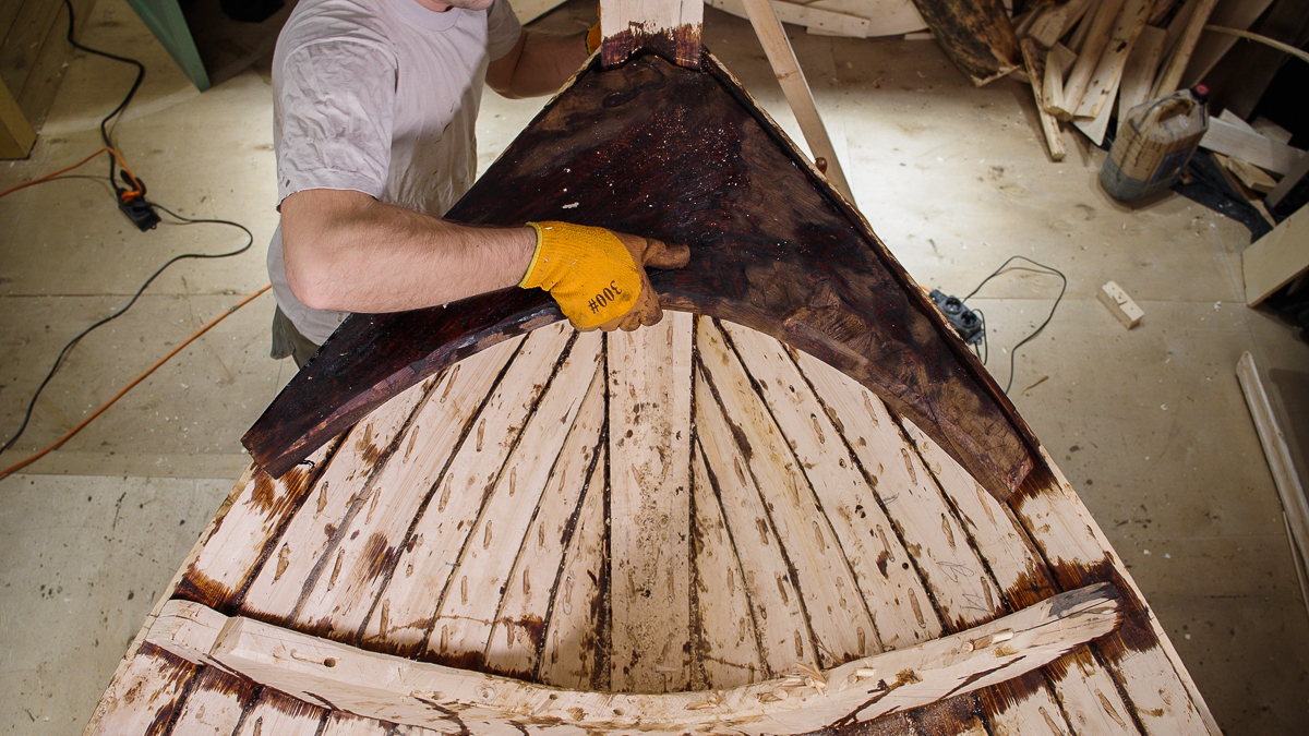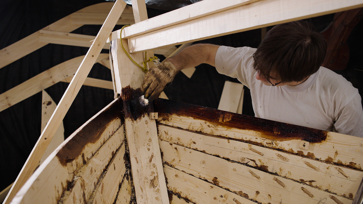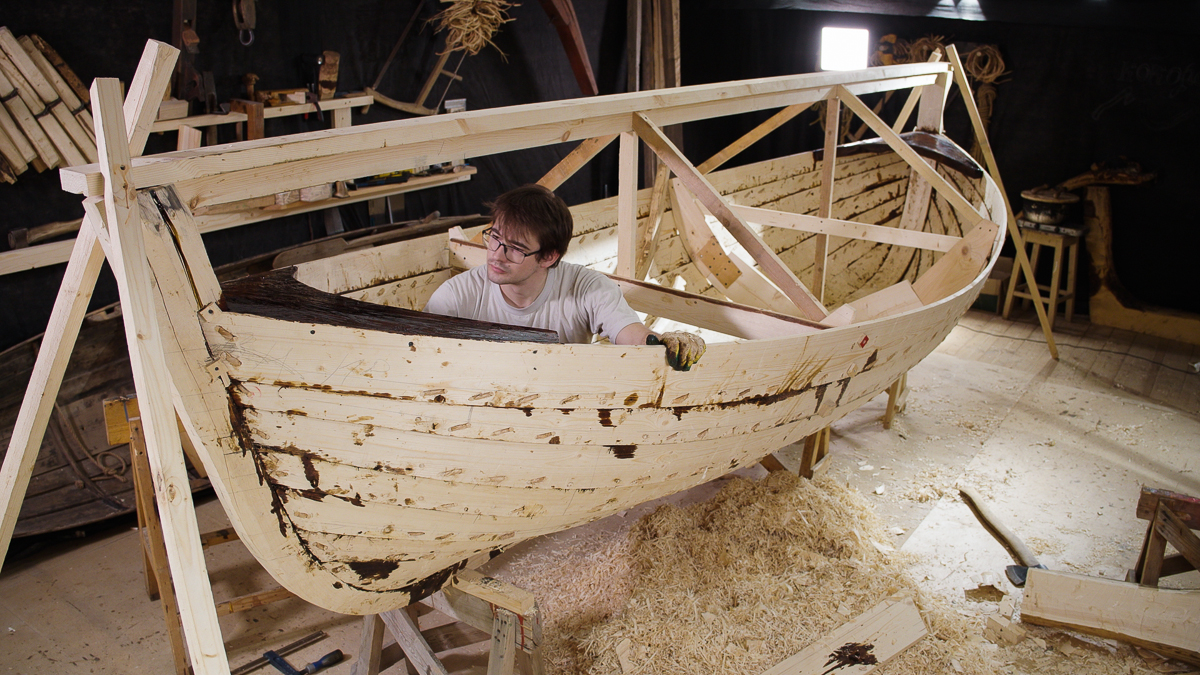 Продолжаем рассказывать об этапах строительства шитого вицей поморского карбаса. В прошлом выпуске мы закончили делать обшивку лодки. В этом — поставим брештуки.