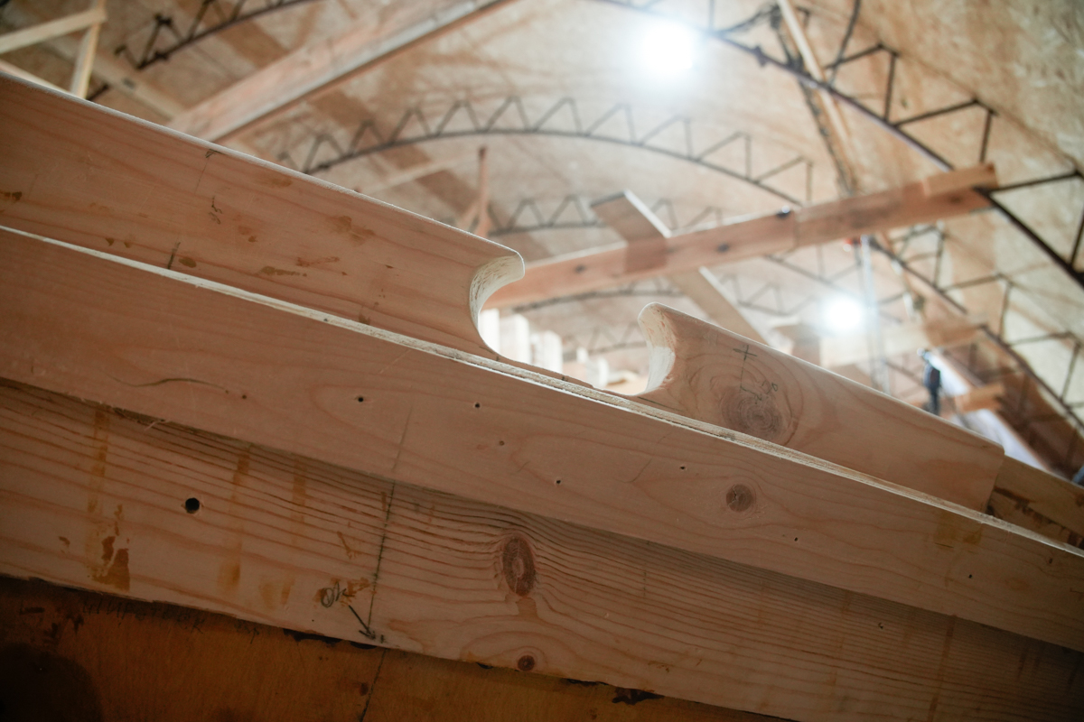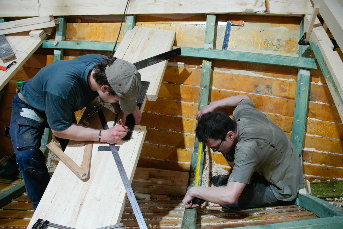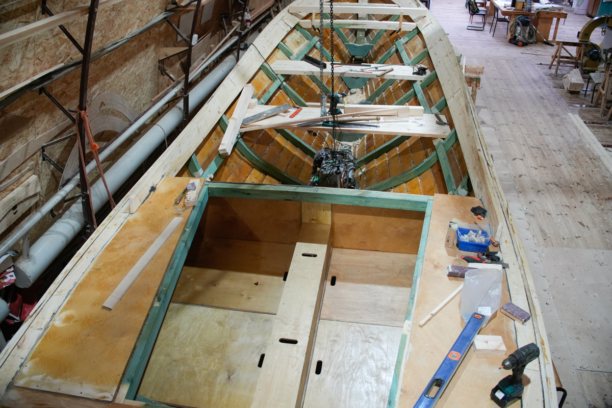 Изготовлены и установлены киповая планка, брештук, бимсы и карлингсы, на которые ляжет палубный настил.