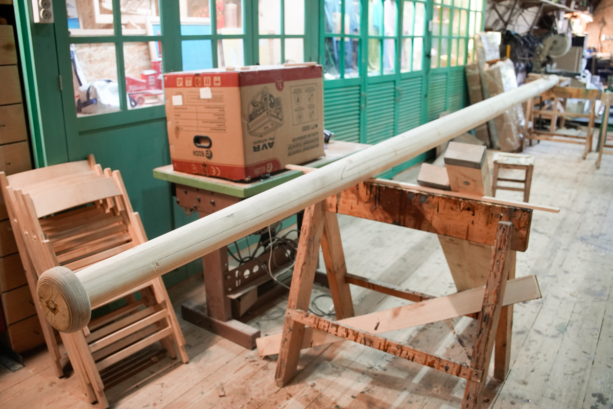 Изготовлены мачта, гик и рей.