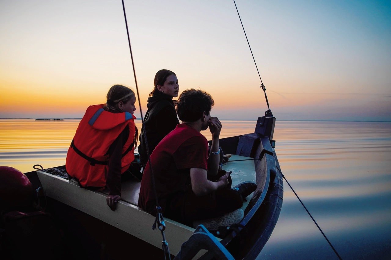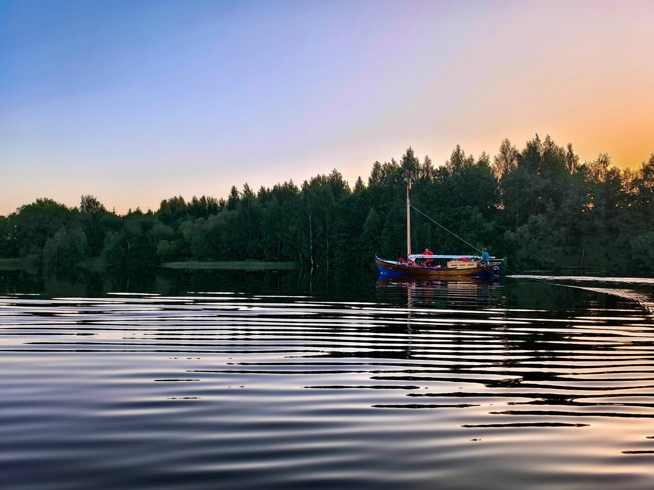 Наблюдать, как от самого берега вместе с нашими лодками, словно на маршрутке, много часов следует стая кружащихся мотыльков. Фотографировать детей, собравшихся на носу и глядящих в закат и в розовую гладь воды.