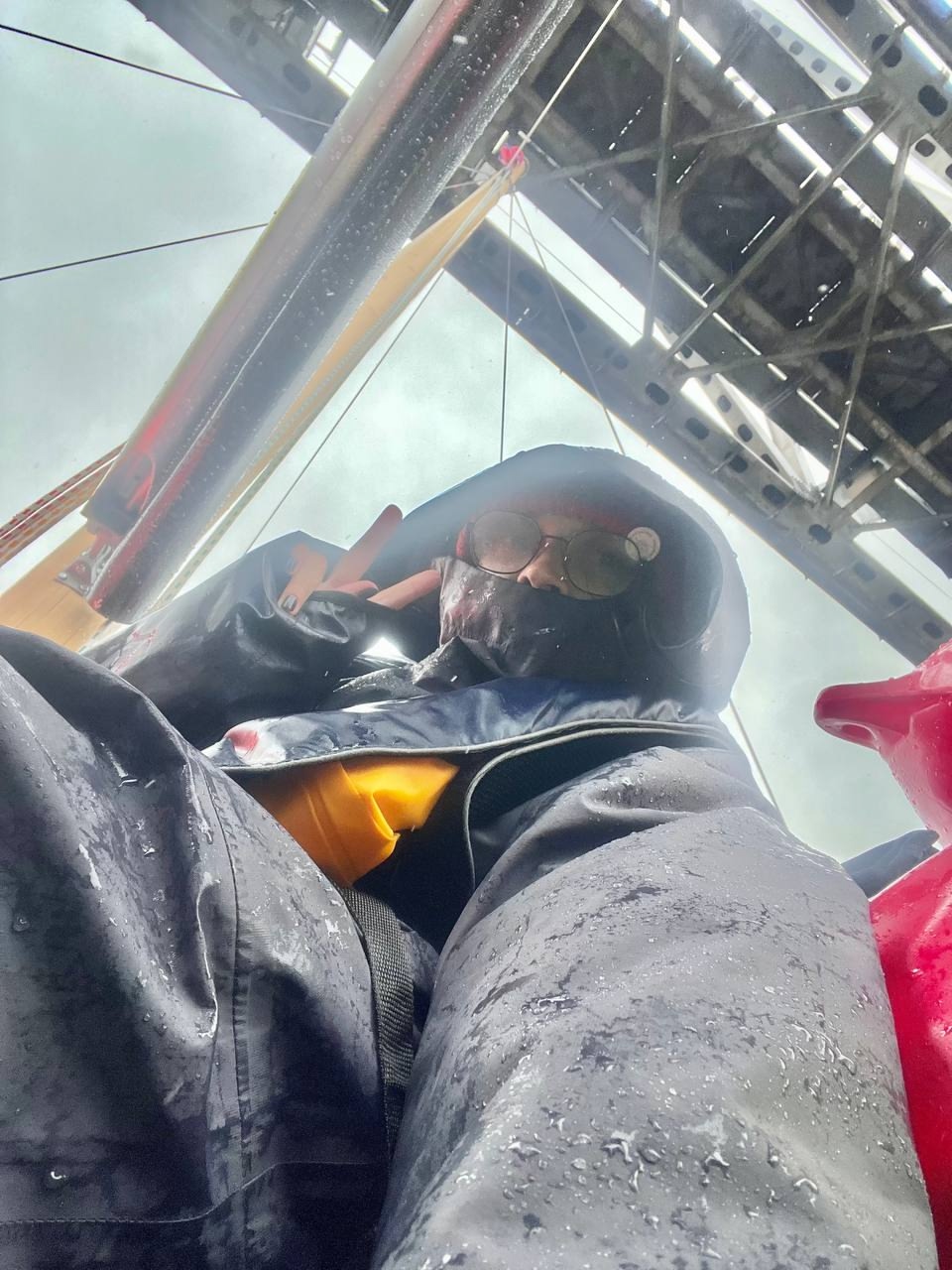 Слушать настойчивые штормовые предупреждения по рации (ветер пятнадцать метров в секунду, волна до метра тридцати; на борту все приподнимают брови, но не говорят ничего, кроме: «Давай запишем на камеру, когда будут повторять»).