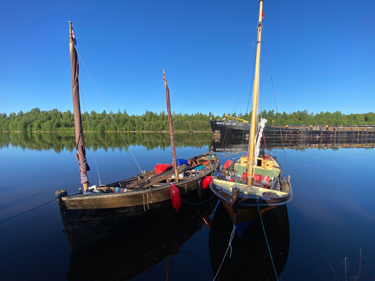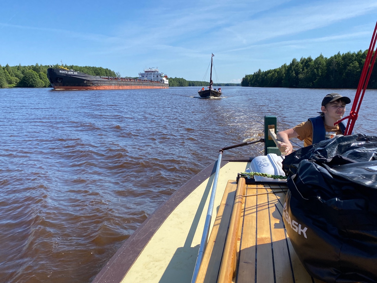 0820, вышли из шлюза 3. Изо всех сил стараемся не отставать от «Окского». С «Матерой» не расцепляемся, так и бежим в обнимку лагом.