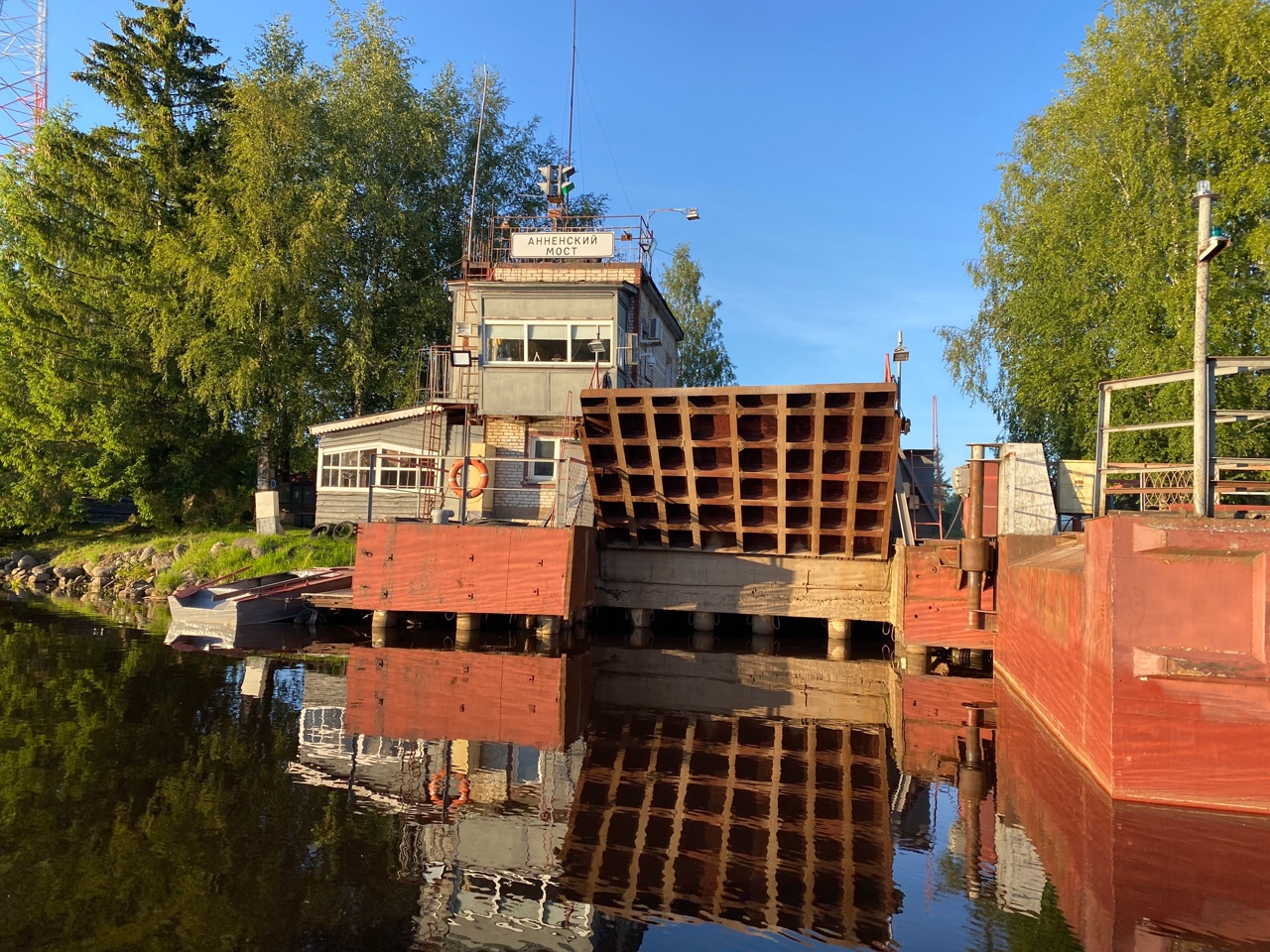 2030, прошли Аненскую переправу. Подъехали прямо к открывающемуся мосту. Встали на стоянку чуть дальше. А флот работает мимо нас. Идут и идут мимо огромные работяги.