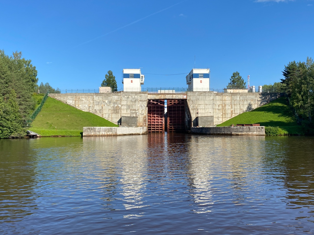 Подошли к шлюзу номер 6 — первому на нашем пути.