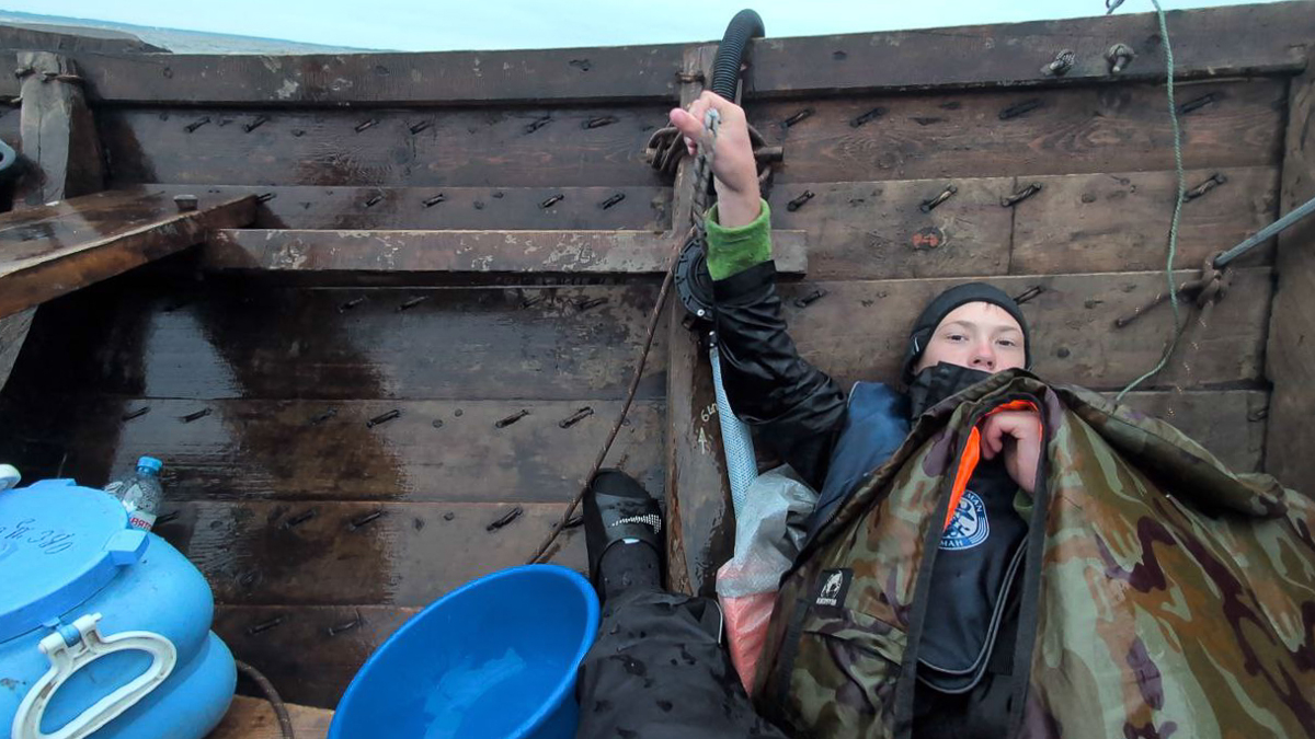 Ещё один участник экспедиции «Мангазейский морской ход» — Тимур Харченко. Тимур — чрезвычайно независимый молодой человек тринадцати лет, он приехал на проект один, без своих взрослых, не зная никого из участников экспедиции. Как и Артём Синцов, Тимур по собственному желанию остался на второй этап плавания.