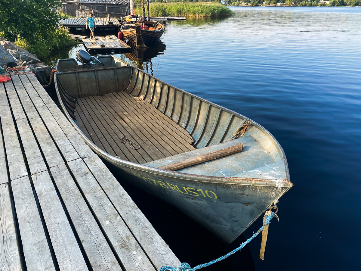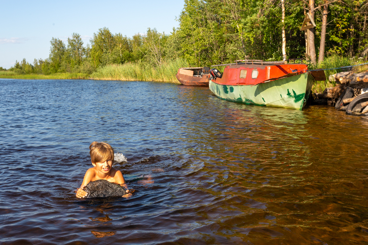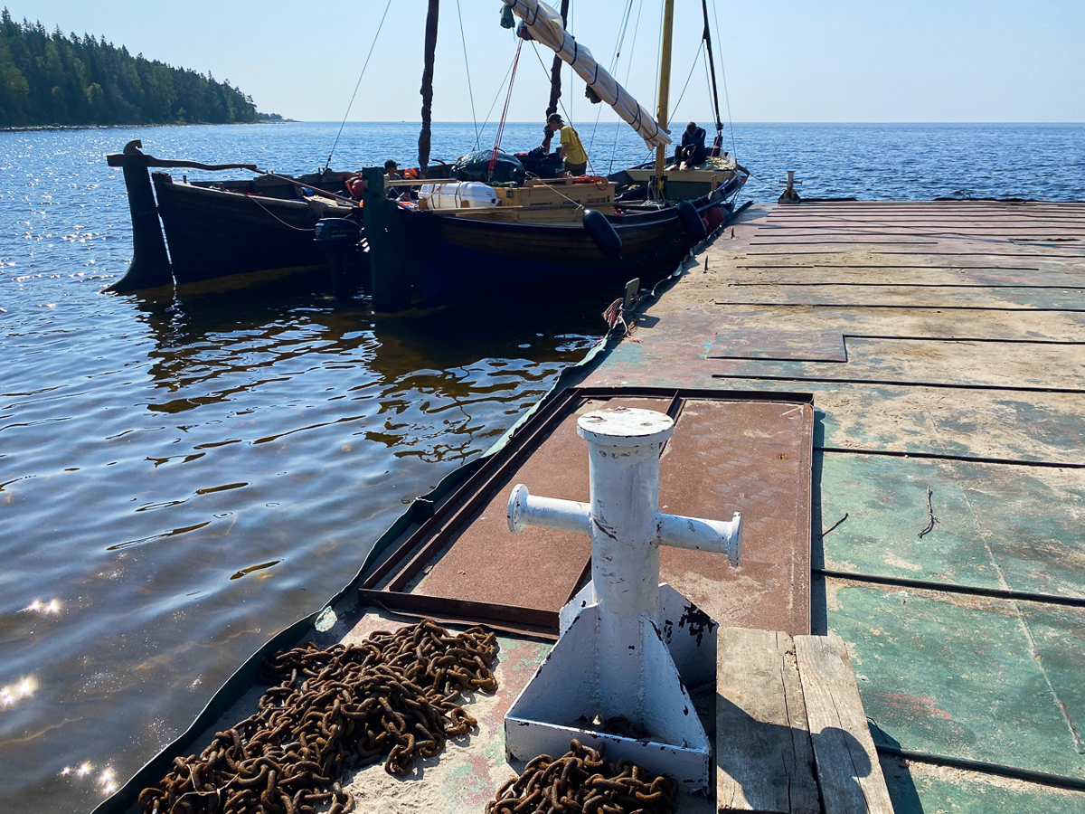 Встали у рыбацкого причала в поселке, ходили в магазин, рассматривали железные лодки.