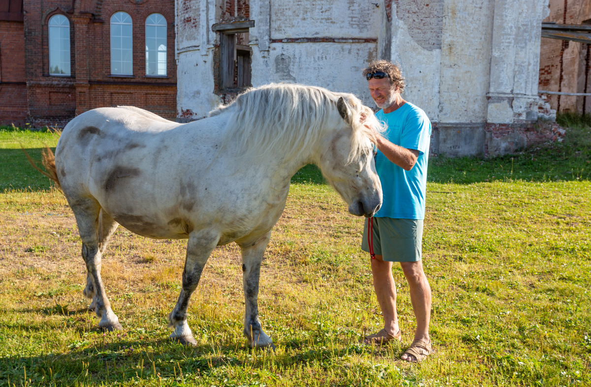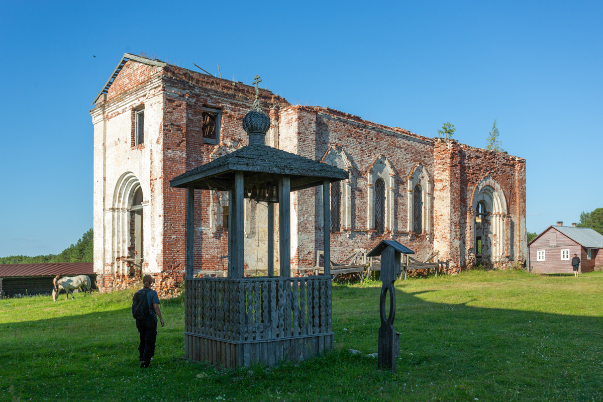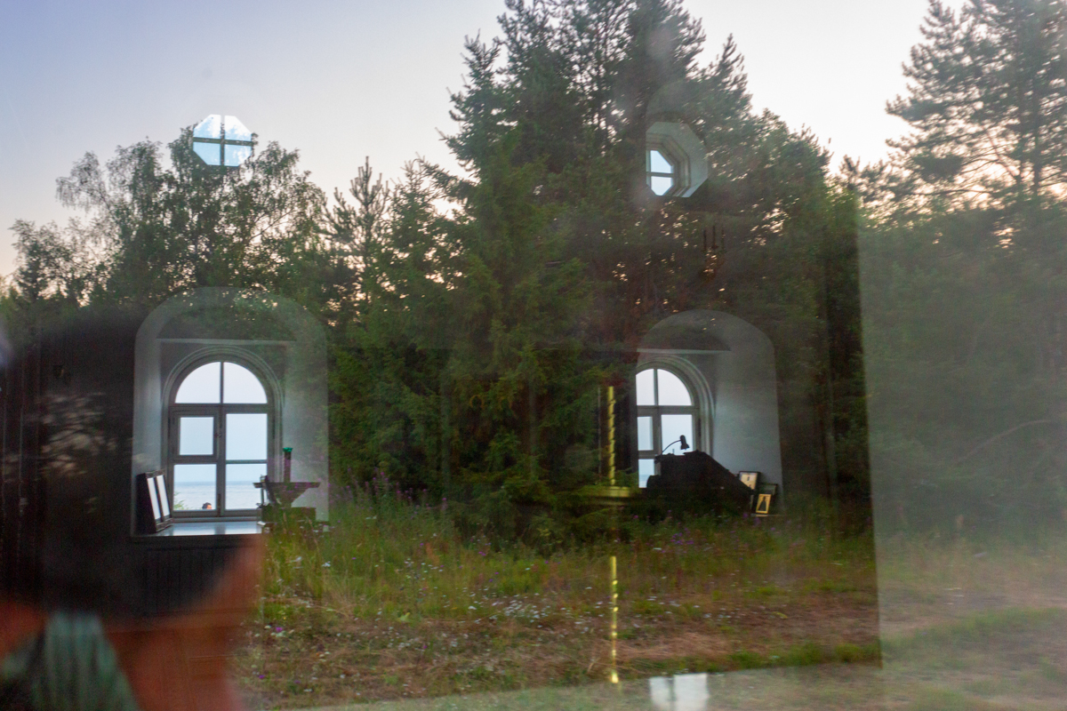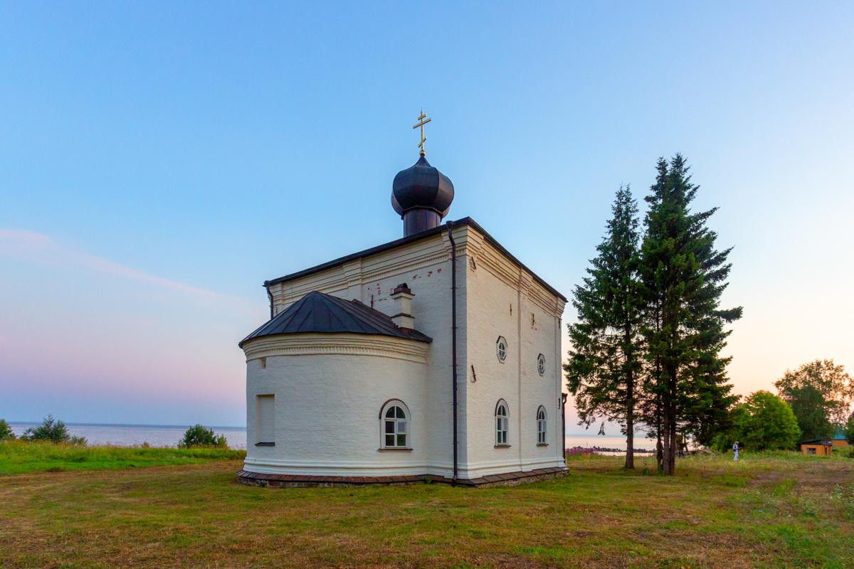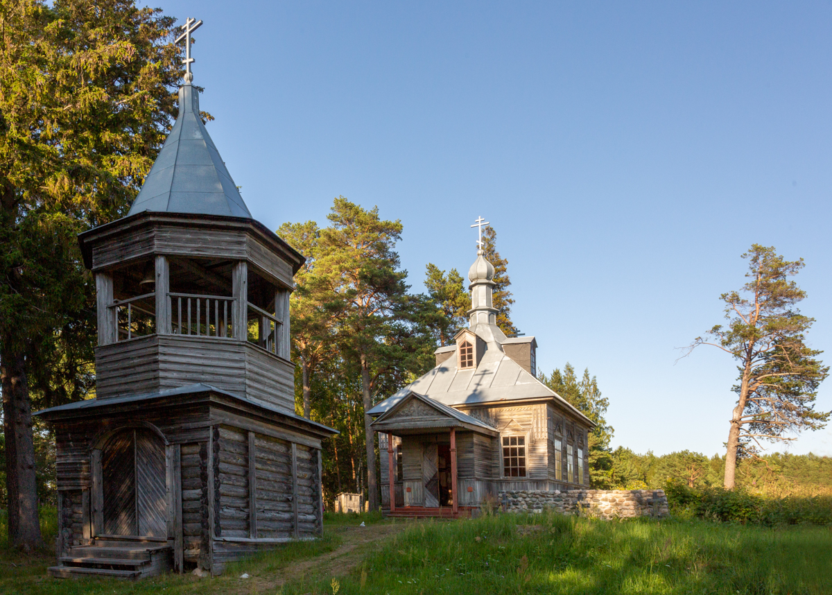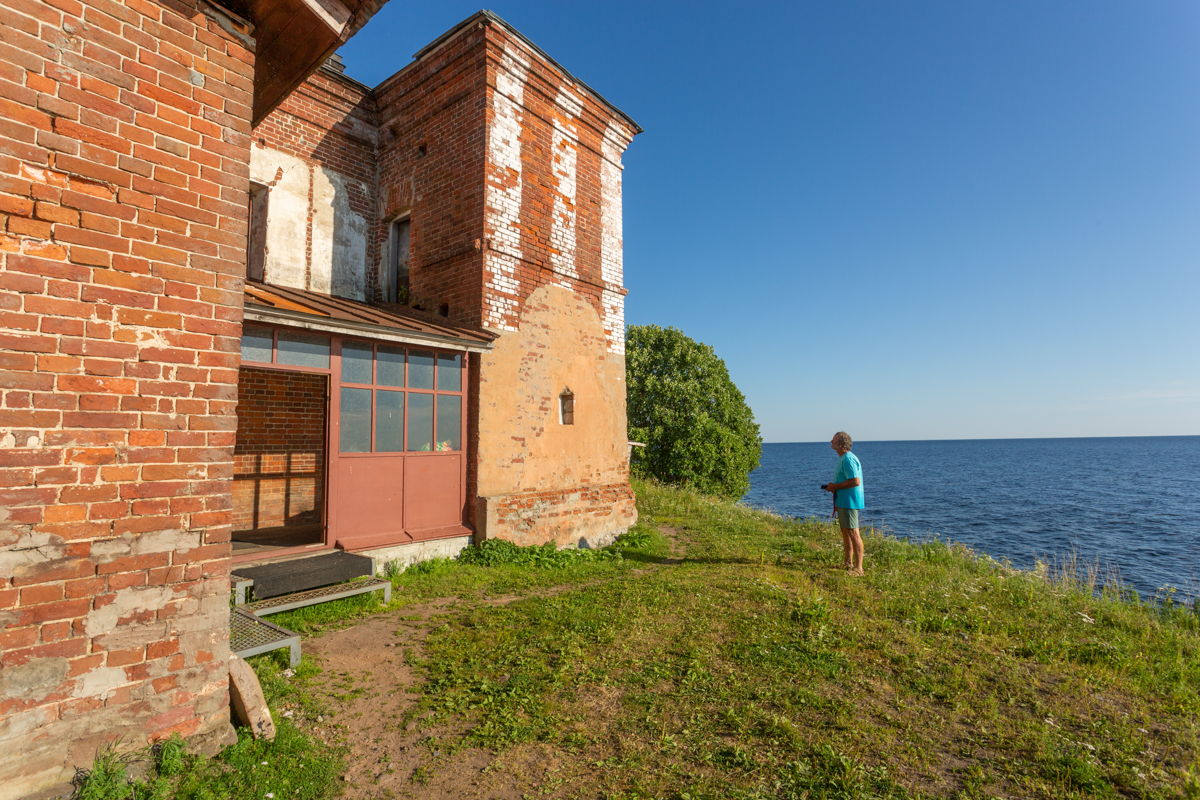 Переночевали в бухте Черничная у грузового монастырского причала. Утром обошли мыс Климецкий Нос и зашли в монастырь. Девушки надели юбки и платочки, мы – штаны. Зашли в храм. Ударили в огромное било на берегу. Послушали истории о медведях, помолились и отправились дальше.