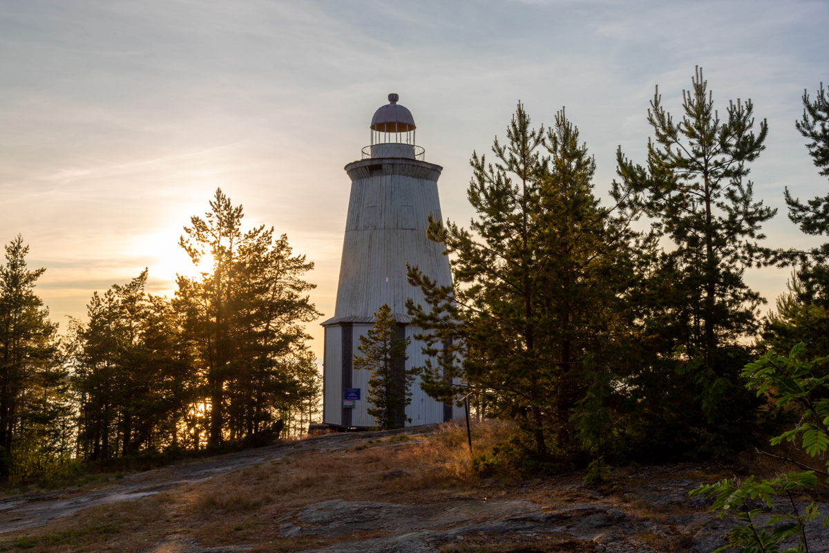 В сумерках прошли мимо Гарницкого маяка и почти в темноте нашли песчаный пляжик на южной оконечности Большого Леликовского острова. Умудрились пройти мимо камней и кинули якорь в песок.