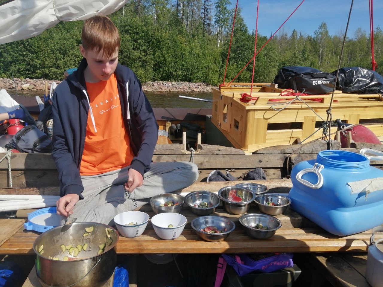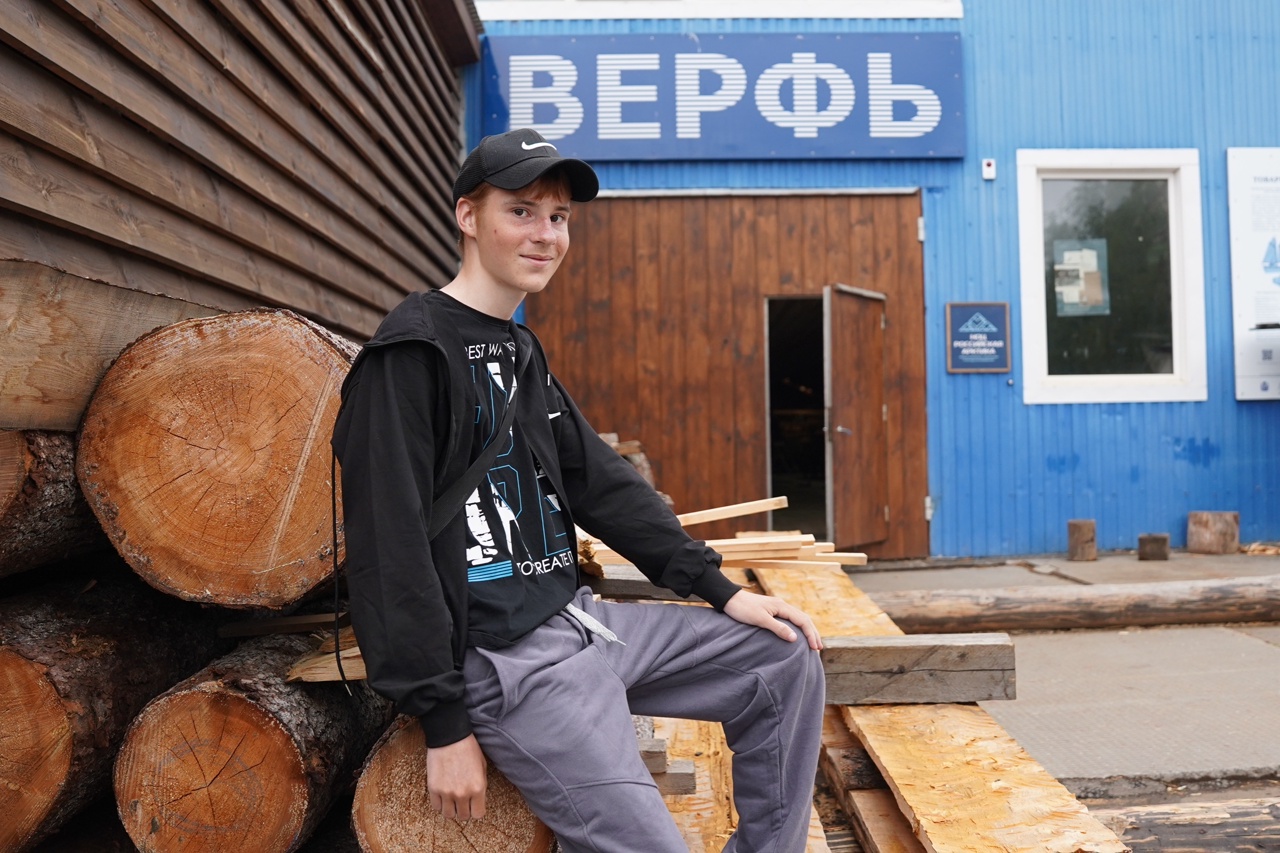 Матвей Полунин — ещё один школьник-судостроитель нашего проекта. В свободное от учёбы время он занимался судомоделированием, этой зимой пришёл на верфь строить настоящую лодку, а летом отправился с нами в экспедицию и прошёл два этапа плавания — от Белозерска до Кижей.