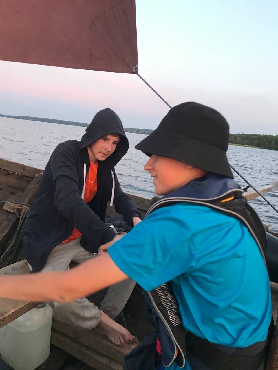 Из того, чему я научился в походе, интереснее всего было вязать узлы. Ещё мы гребли, швартовались, ставили паруса, привязывали кранцы. Шторма на наших этапах не было.