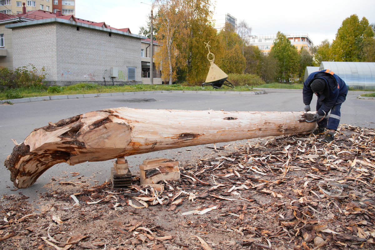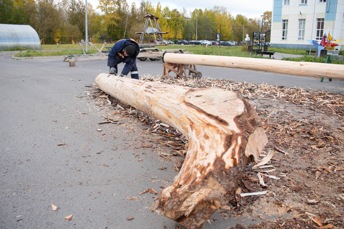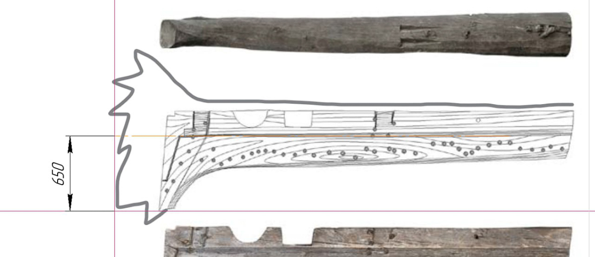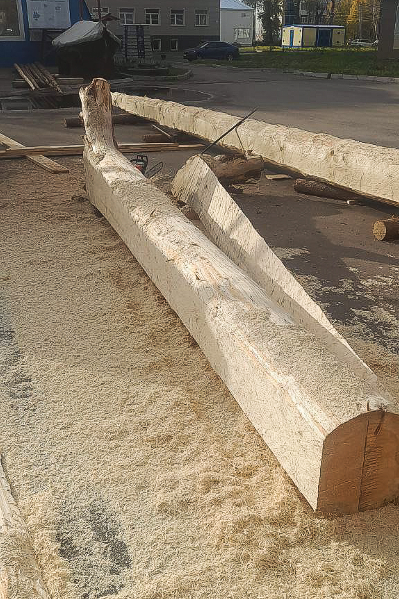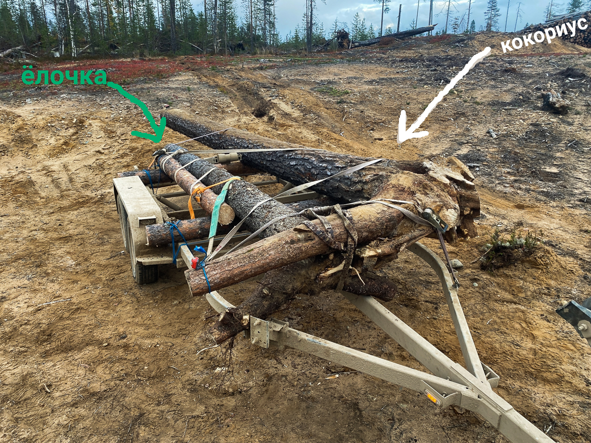 Вчера, 30 сентября, мы привезли из леса кокору 4,5 метров для форштевня. Регулярно ездим в лес за 80 км на место ветровала и добываем там огромные сосны. Можно сказать, что эти кокоры тоже даровые, поваленные ветром. Нужно успеть заготовить их как можно больше до 10 октября — до того, как закроют дорогу. Нужны ахтерштевень и хоть пяток перешв.