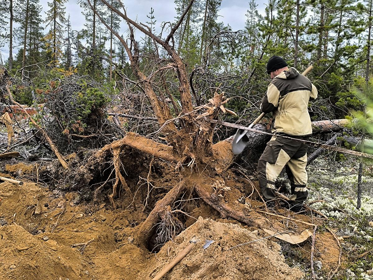 И всё же: заготовили большую кокору для ахтерштевня (правда, пока не смогли ее сдвинуть с места); нашли и заготовили прекраснейшую кокору сосны. Эта сосна ломает все кокорные стереотипы. Считается, что толковых сосновых кокор не бывает, так вот — еще как бывают. Тёма даже назвал её кокориусом (я от него такого не слышал раньше).