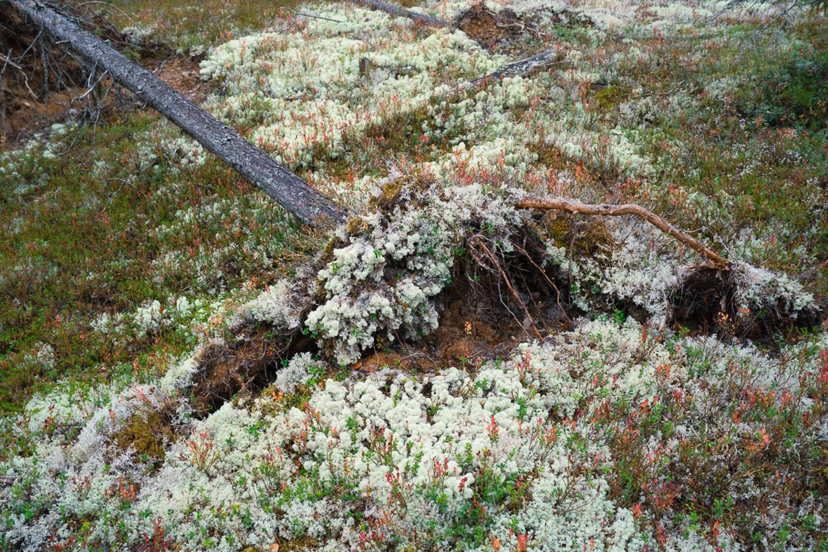Добыли три кокоры. Все замечательные. Одна ёлочка в пару вчерашней и две сосновые. Понемногу глаз привык видеть правильные дерева, и дело идет все быстрее. Я влюблен в наш ветровал — он огромен!