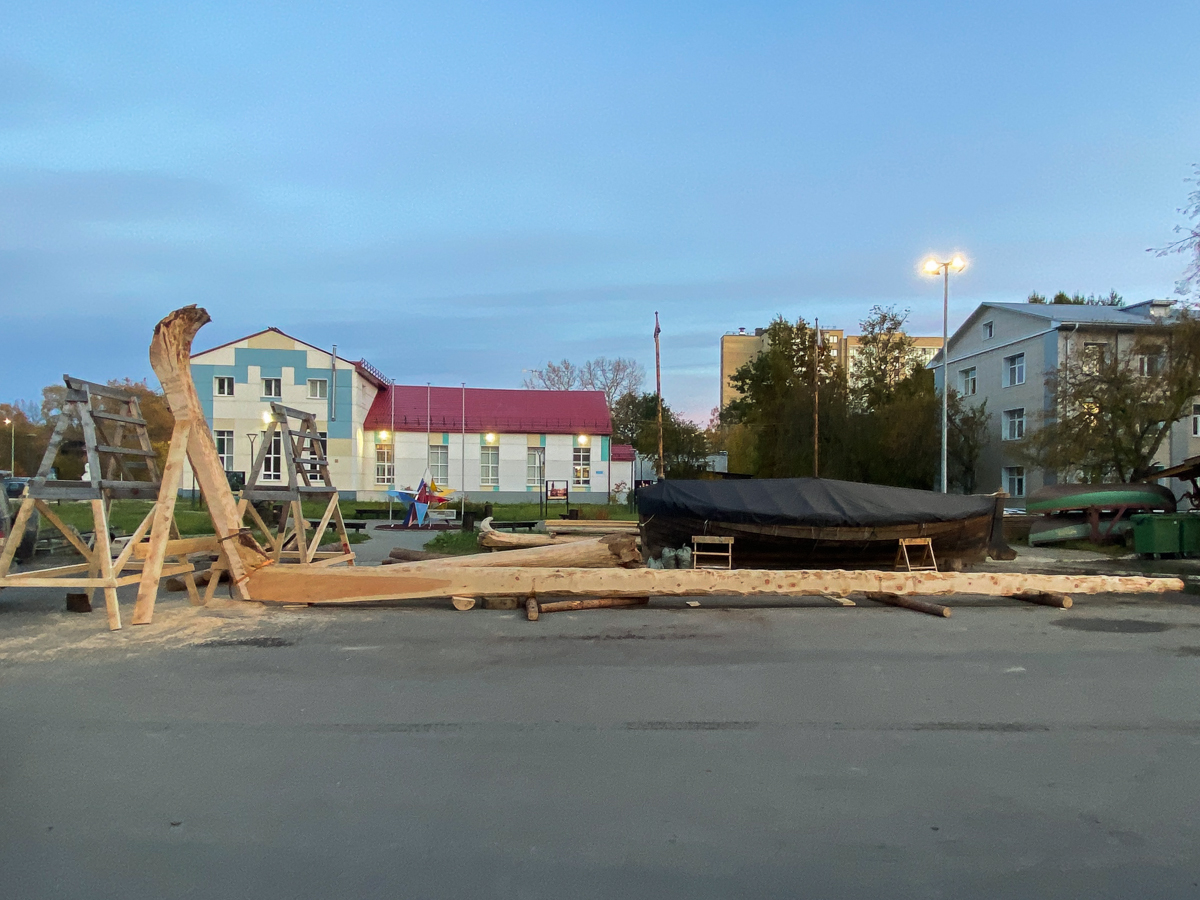 Всё, сделанное за эти дни, тоже воспринималось, как дар и счастливое совпадение. Мы открыли выставку в Пушкинском музее в августе, провели карбасную регату в Кальчино, добыли огромную шестнадцатиметровую «палку» киля будущего коча.