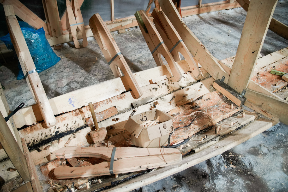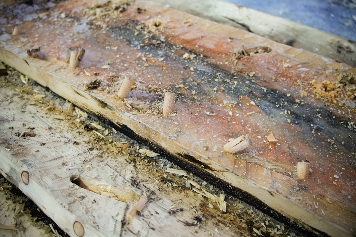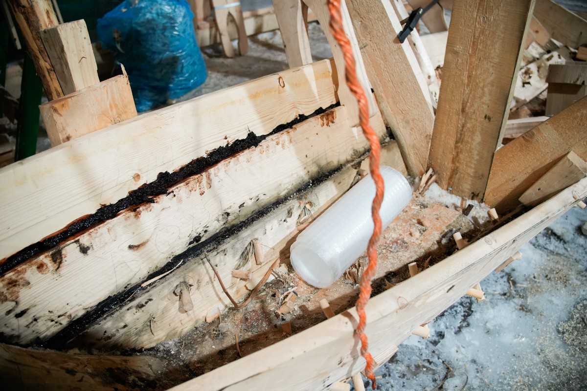 Ещё один вывод от капитана — доска, распаренная повторно, в парилке возвращает себе изначальную прямую форму, а доска, после распаривания стоящая на своём месте и затем снятая для подгонки, сохраняет выгнутую форму. Вывод: повторно распаривать доски при установке набоя не нужно, а подстрагивать и подгонять однажды распаренные доски следует на сухую, холодными.