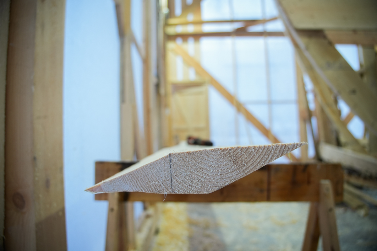 Колотые доски прочные и имеют природную загнутую форму, но есть нюансы. В нашем полушарии все стволы деревьев закручены в одну сторону — их волокна следуют согласно движению солнца. То есть, если для левого борта нам подойдёт ель, то для правого придётся искать… пальму.
