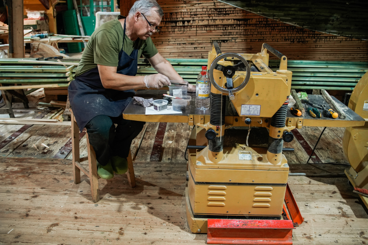 Саша-механик поочередно чинит станки: ленту и рейсмус — чтобы не болели.