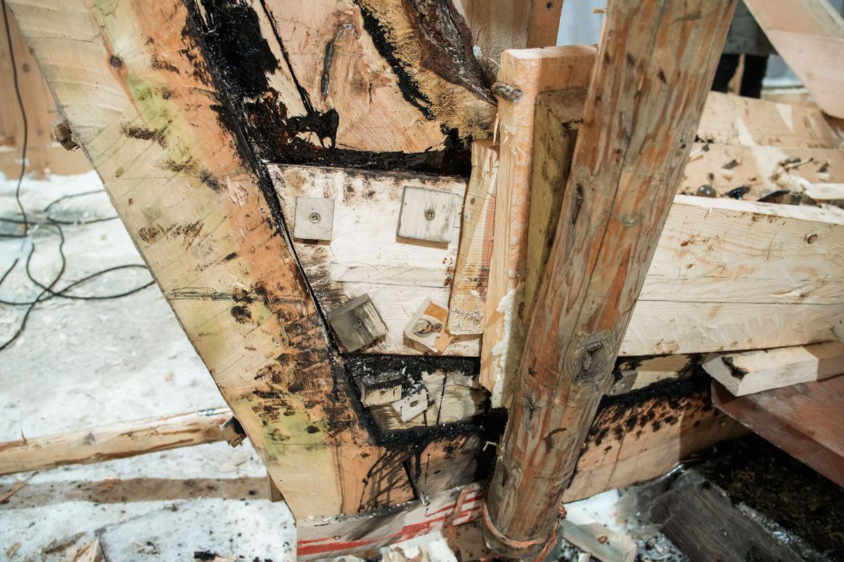Клеить не будем, менять! Капитан расставил запятые так. Вытесываем новые доски.