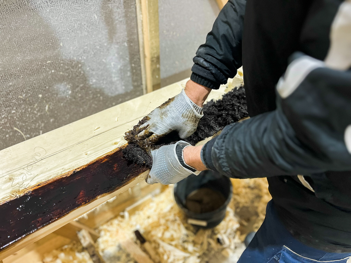 Спойлер: внутри трещины образуется пена, такая доска развалится ещё при распаривании — метод не работает, делаем новую доску.