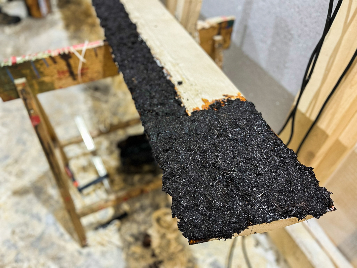 В качестве эксперимента попробовали заклеить трещину на снятой доске при помощи полиуретанового клея и струбцин.