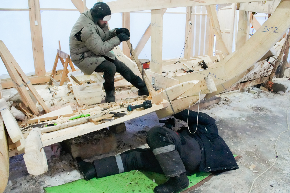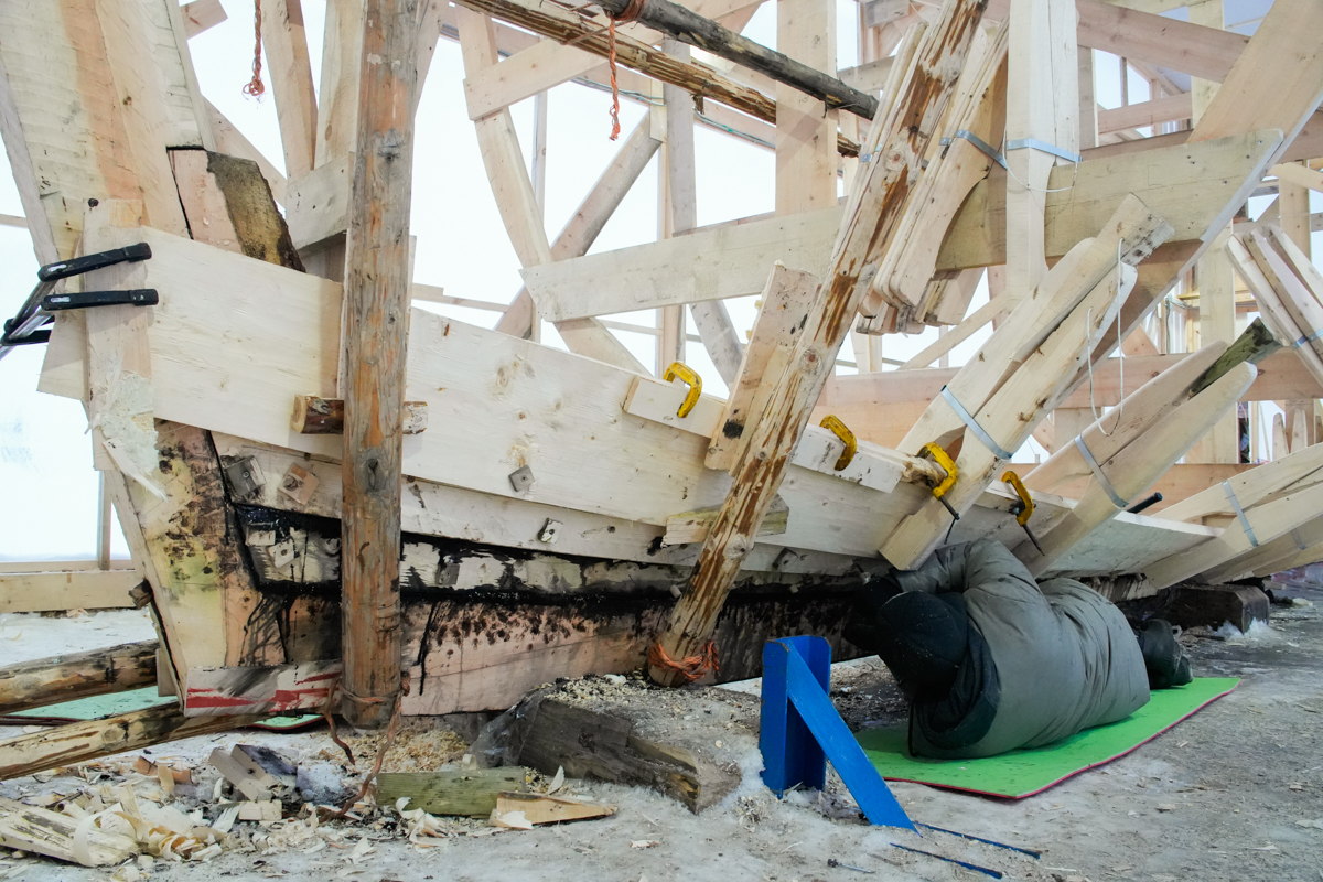 Среди плотников, экспертов-судостроителей, волонтёров и друзей верфи на этой неделе ротации: уехал Женя-альпинист из Беларуси (обещал приехать ещё); на днях в Москву отправится Слава Мизин, завершивший миссию по монтажу выставки ММХ и ведению экскурсий по ней же.