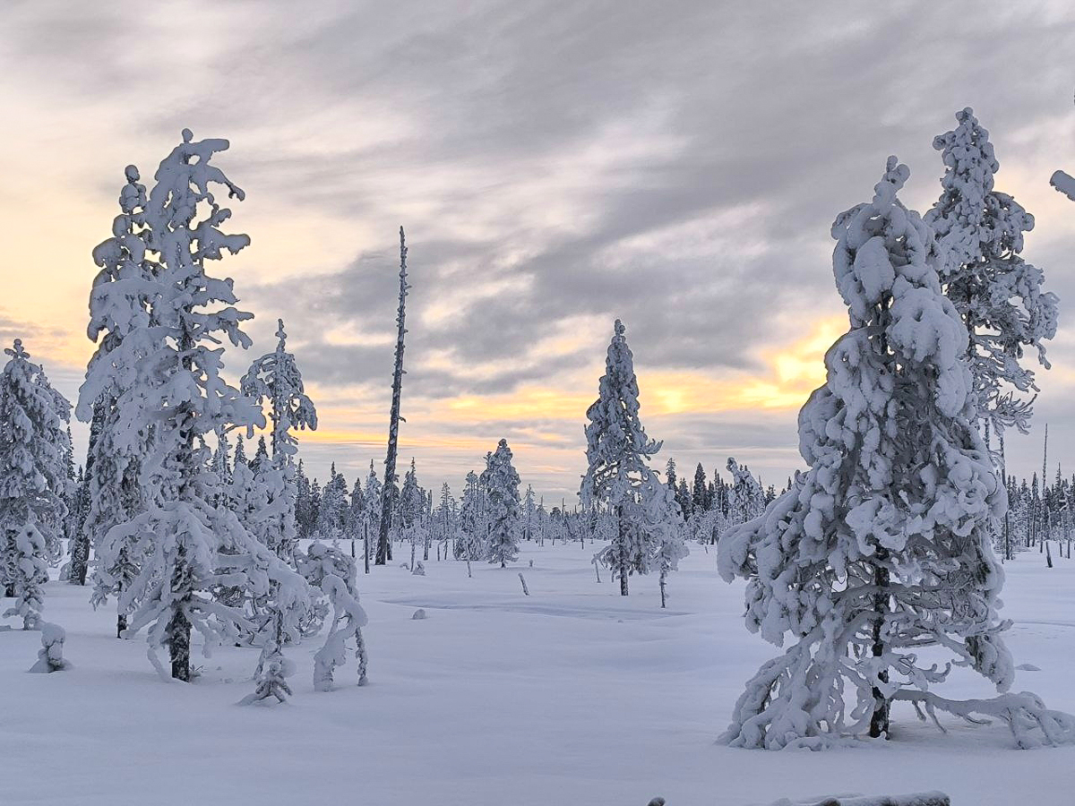 Лес заснеженный и сказочный.