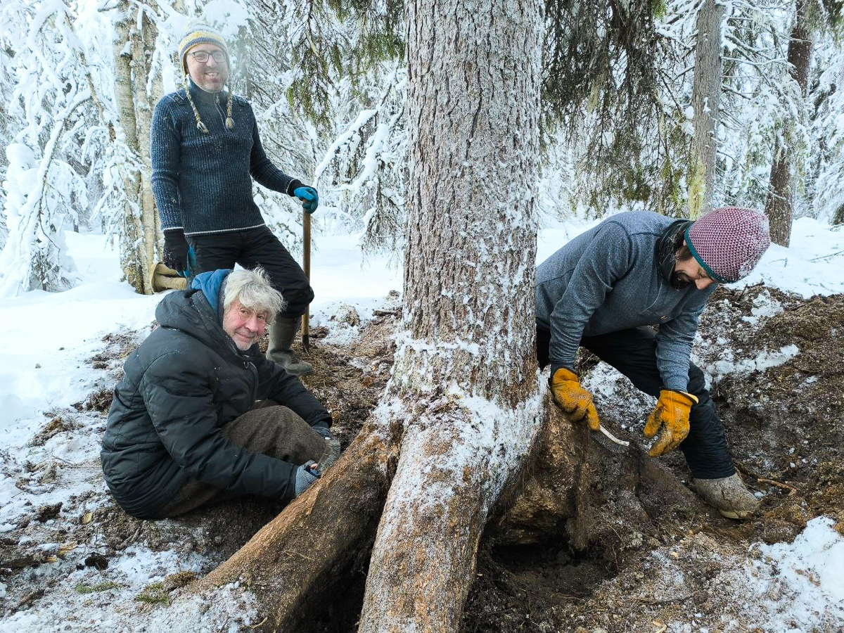 Выехали в экспедицию на лесную делянку. Добыли одну кокору, но вытащить её сами не смогли. Подождём, пока будет дорога.