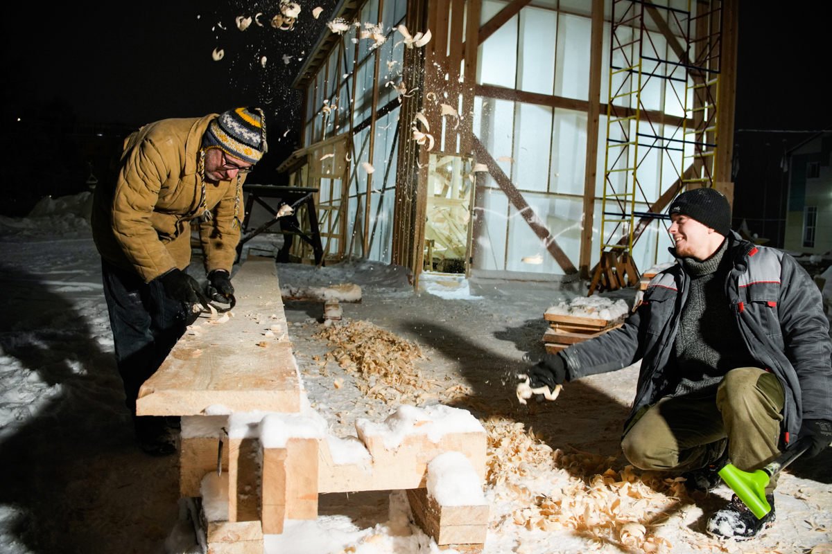 На одной из фотографий вы можете заметить, как Егор в качестве спецэффектов по собственной инициативе подбрасывает Коле в кадр стружку. Вот такая у нас слаженная командная работа и взаимная поддержка — во всём.