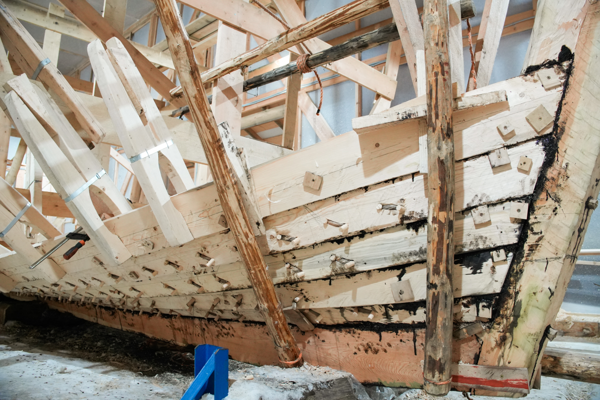Корма прошита до пятого набоя включительно, нос — до четвёртого слева и пятого справа, центр коча — до третьего набоя.