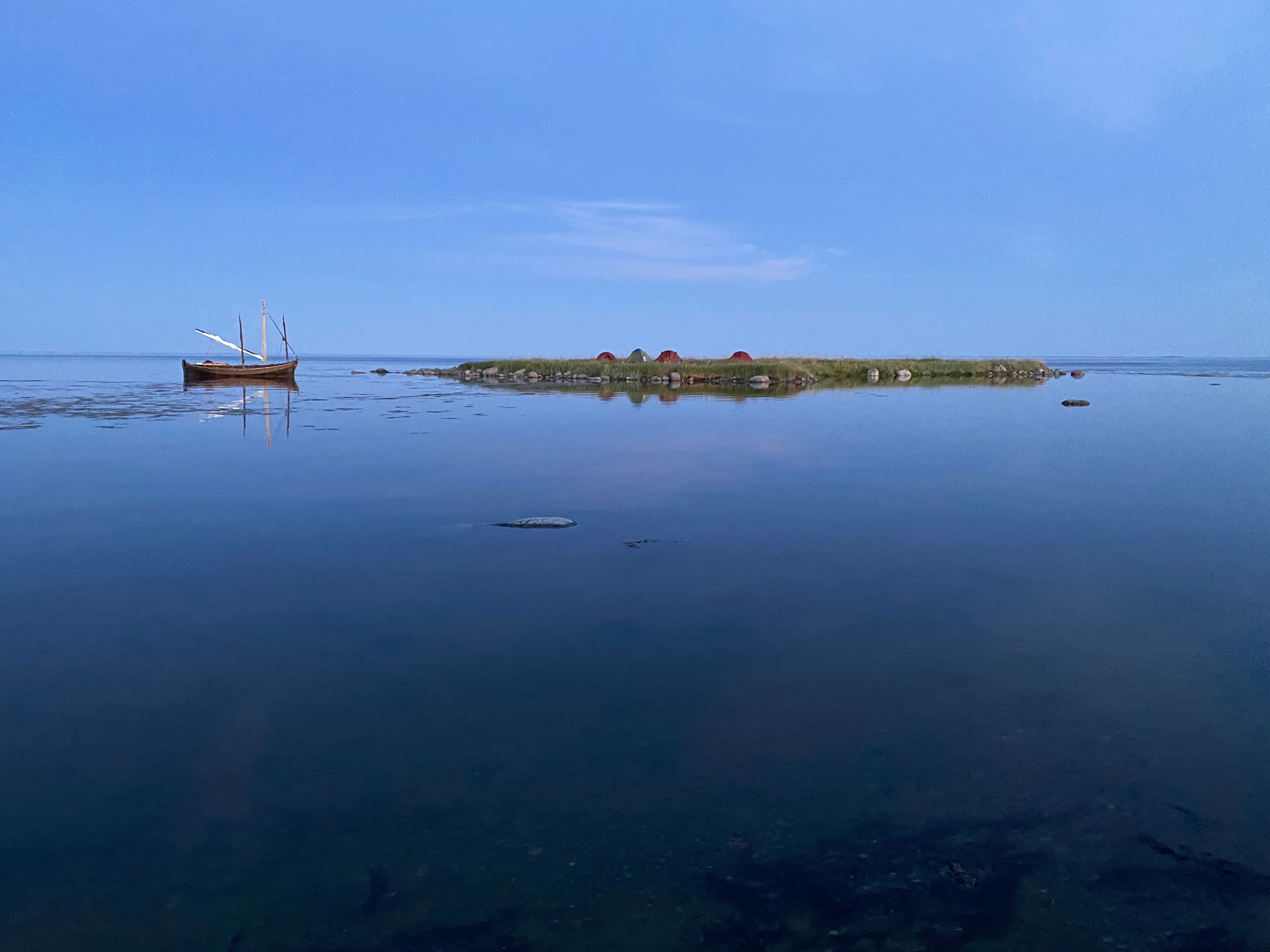 1600, пришли на Большой Заяцкий. Сегодня на море штиль. Идти дальше нет никакого смысла. Ждём завтрашнего юго-восточного ветерка.