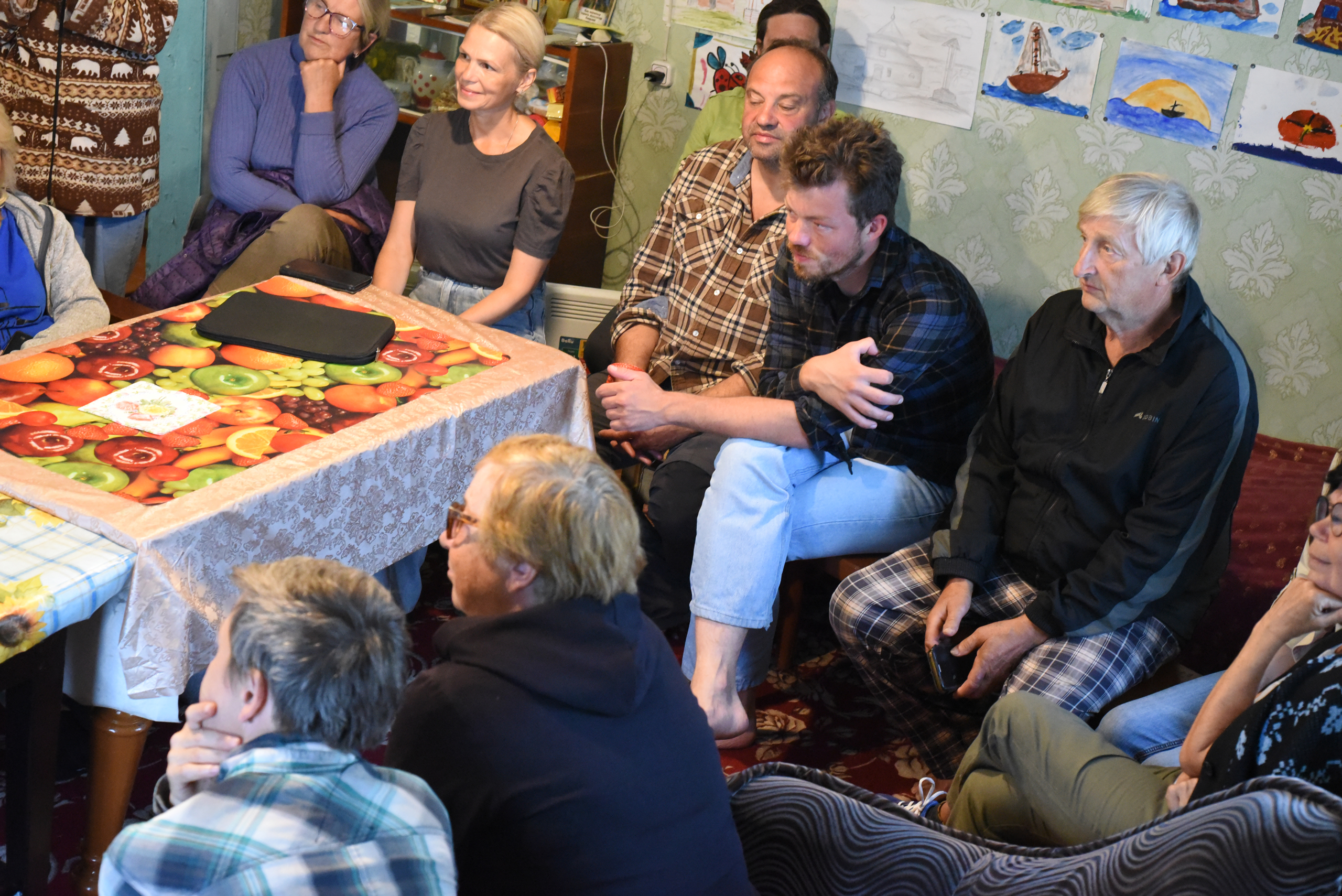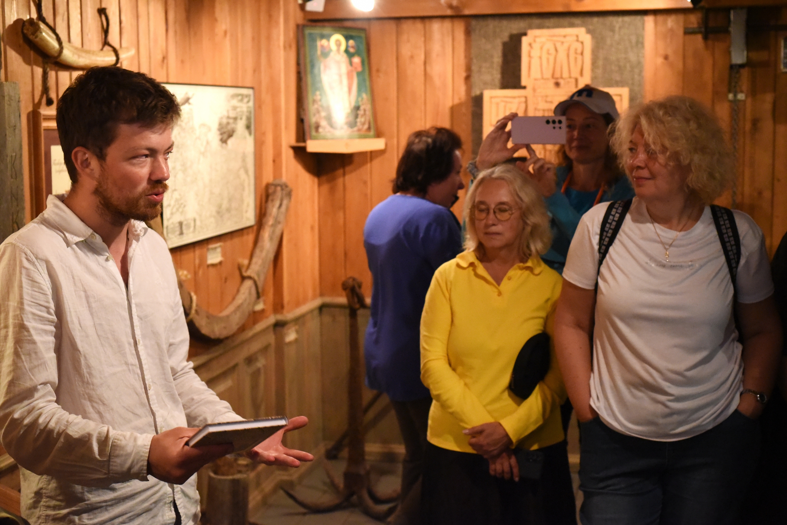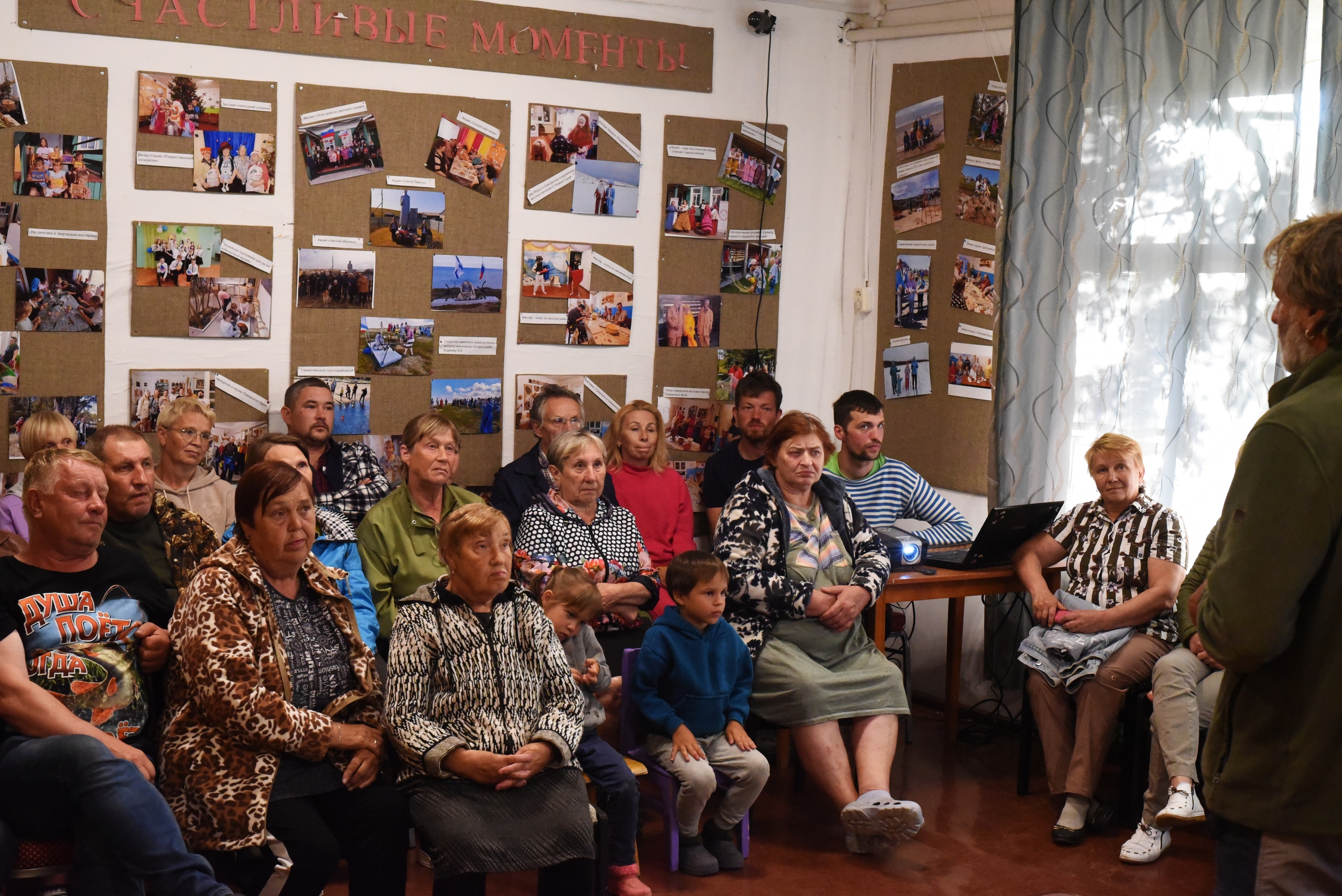 Вечером было большое выступление Евгения Шкарубы и Михаила Калинина для жителей деревни в музее, показ фильма, гости на нашей стоянке.