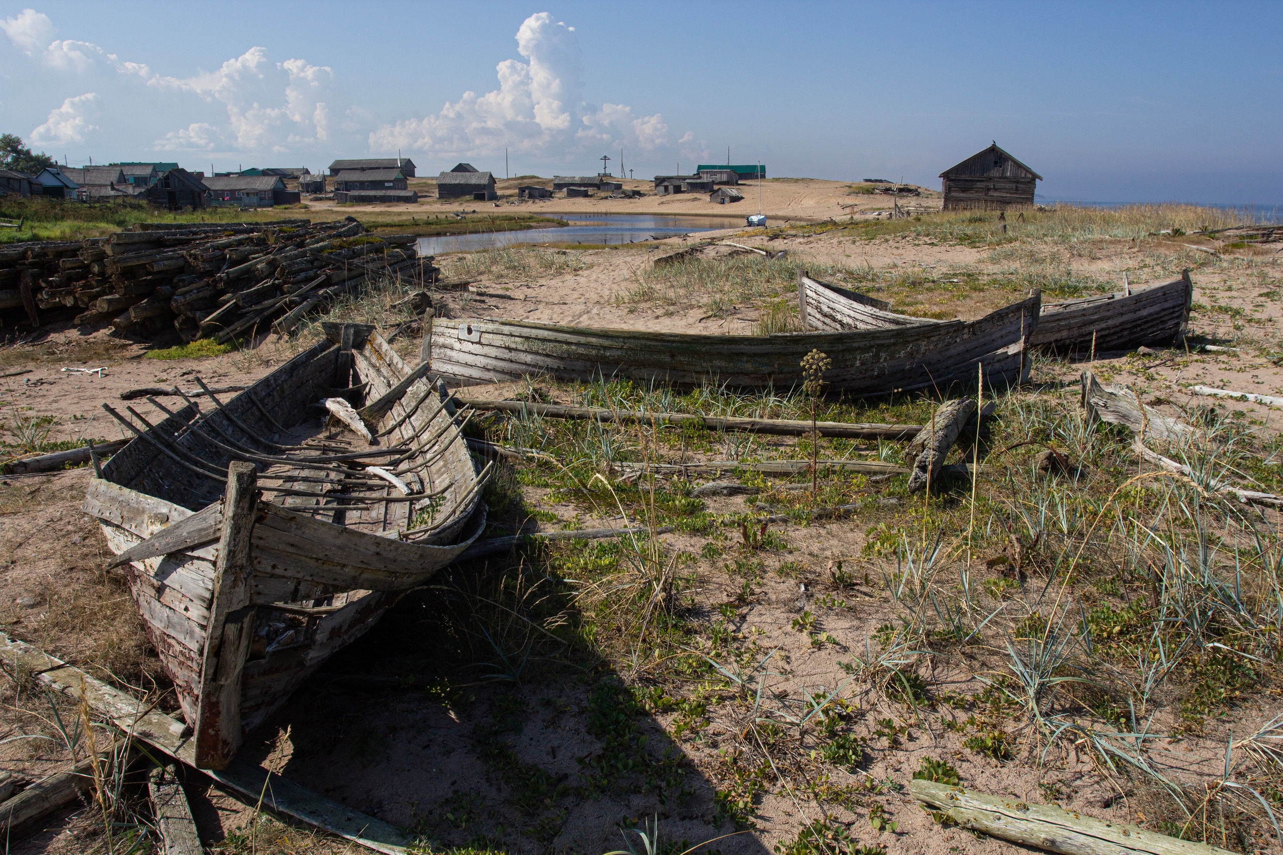 Этот день никуда не выходили – ветер с моря. Съездили на экскурсию в Лопшеньгу, увидели старый деревянный аэропорт с музеем, прогулялись по бережку и вернулись в Яреньгу пешком.
