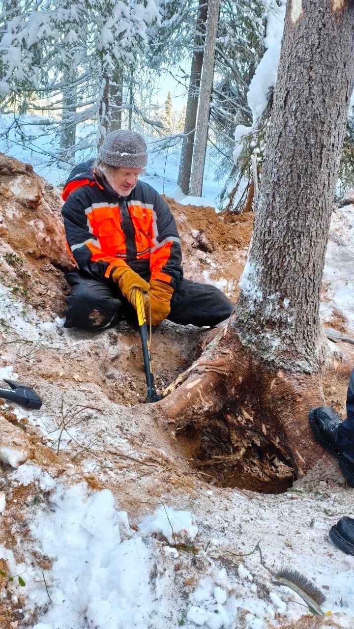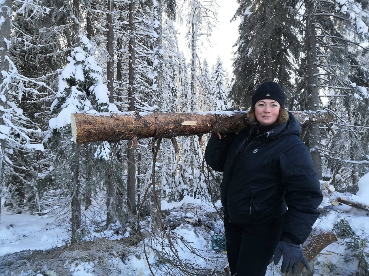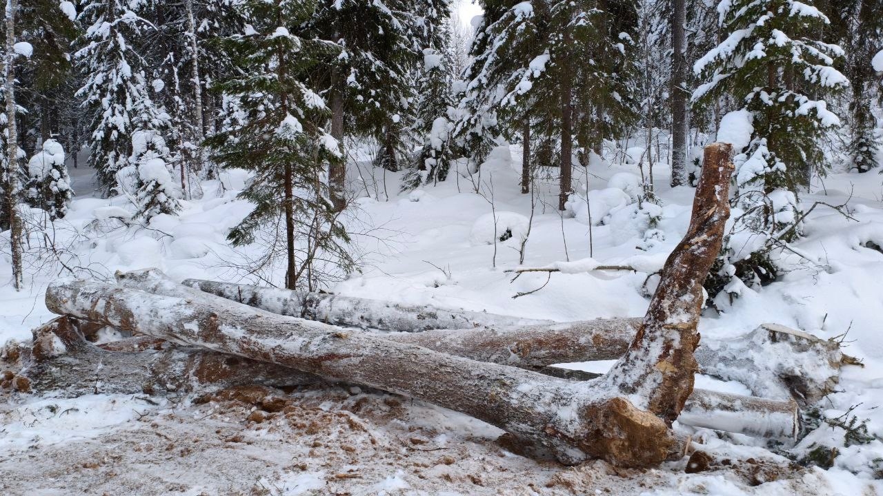 За одну поездку получается добыть одну кокору. Сегодняшняя коварно повисла на соседнем дереве, в понедельник ребята поедут её снимать.