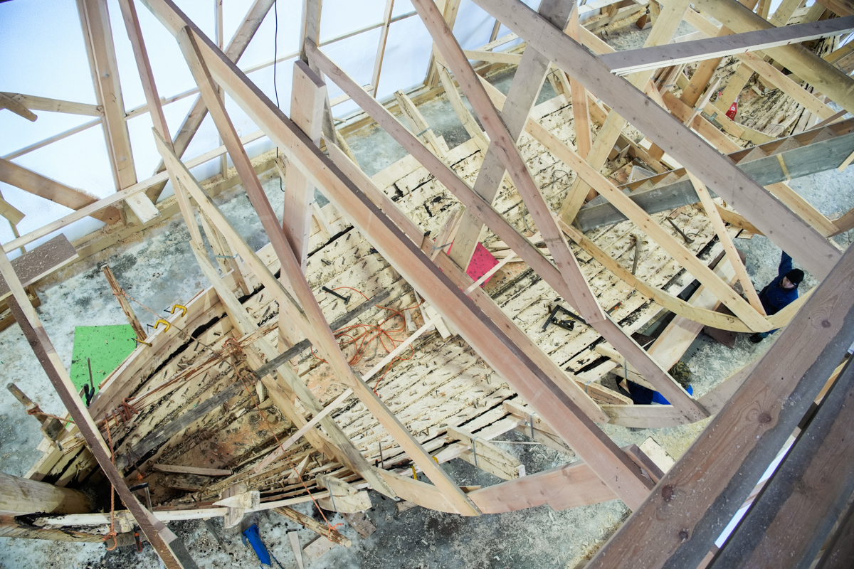 Коч подрос довольно высоко, так что мы поставили первые леса вдоль бортов у штевней.