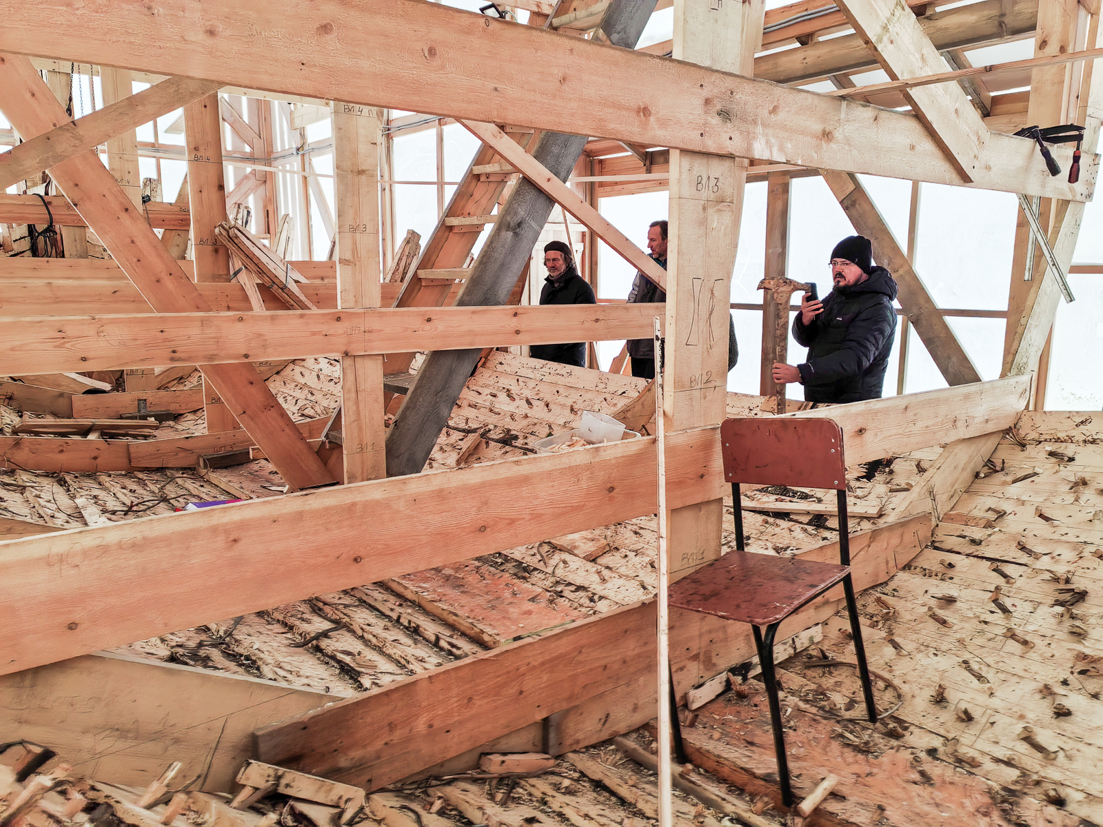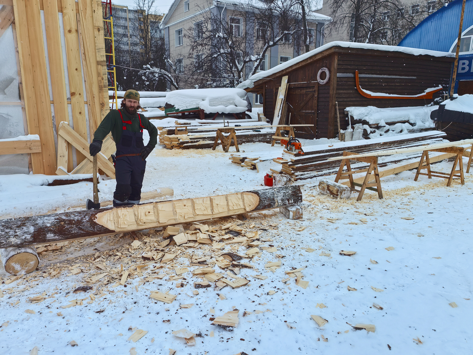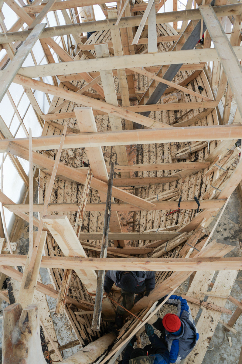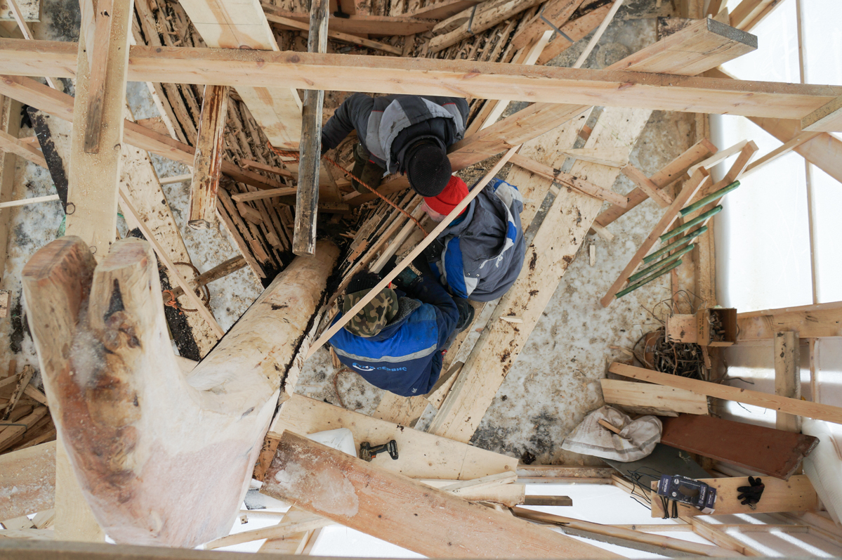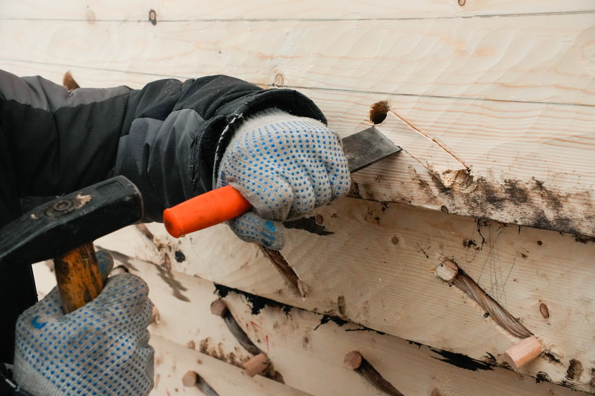 Антон сверлит дырки в набоях, Егор с Артемом Калининым месят мох со смолой, Вадим Голёв вытесывает донницы, Макс хочет поставить весь набой за один день, Чифан снимает всё вокруг с обеих рук. Аншлаг!