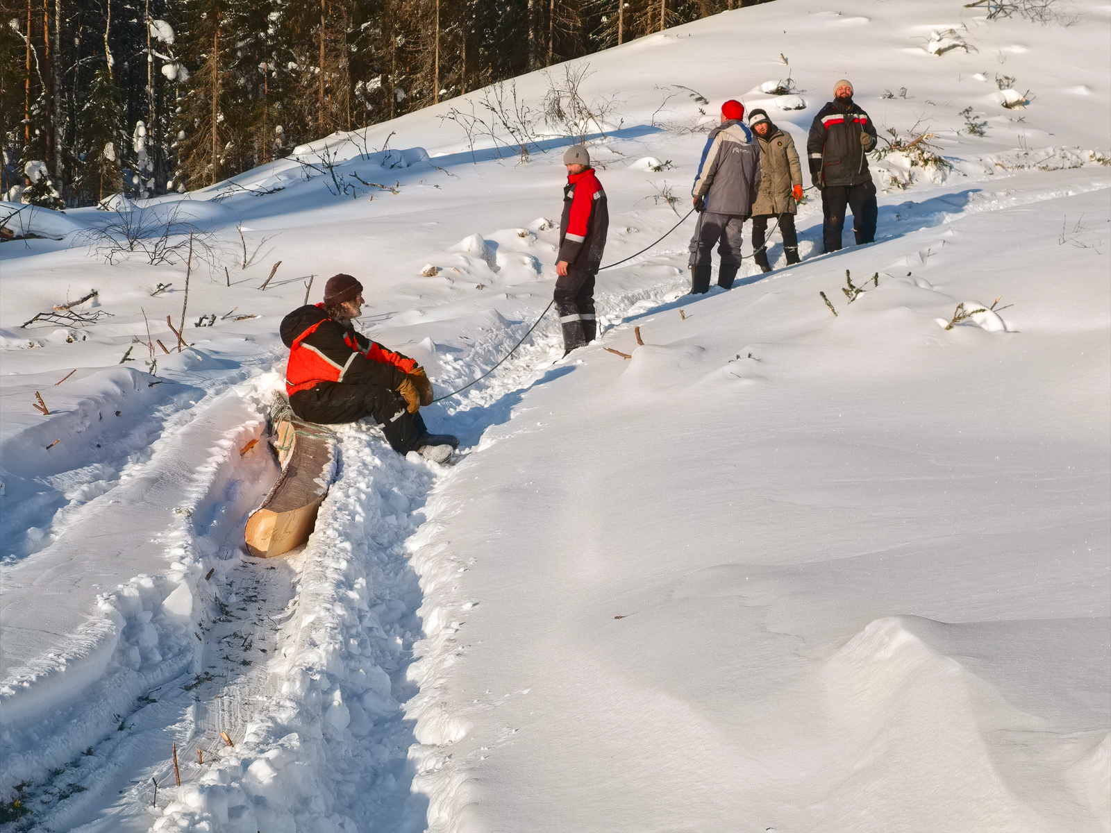 Сегодня Женя увёз их в лес — переживать незабываемые приключения и жить полной жизнью по пояс в снегу.