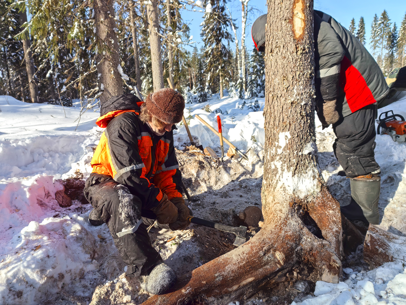 Копают, рубят, валят, тащат, упахиваются по полной программе — и, кажется, совершенно этим счастливы.