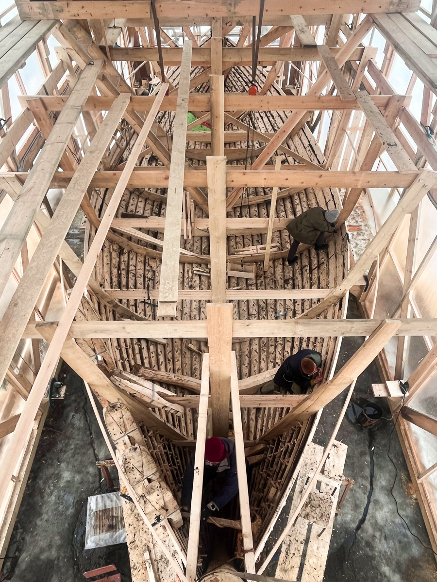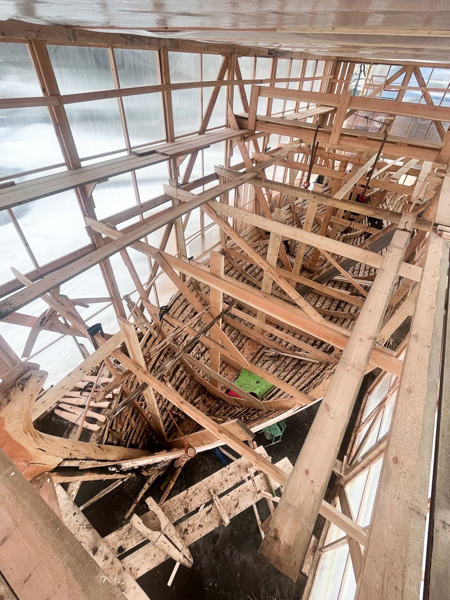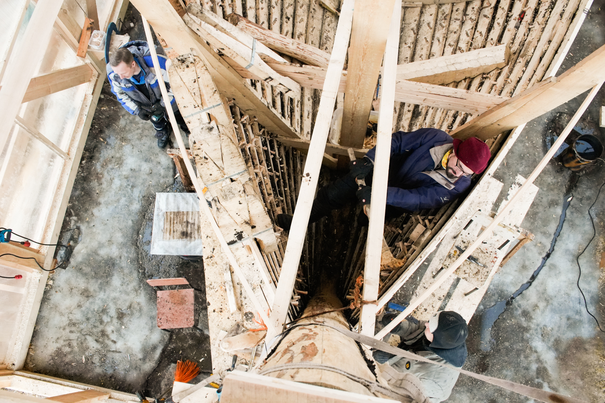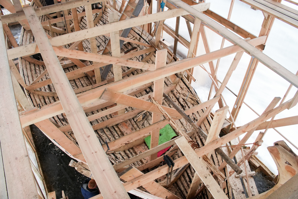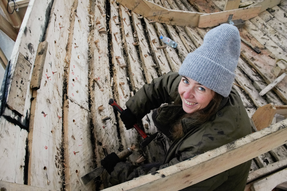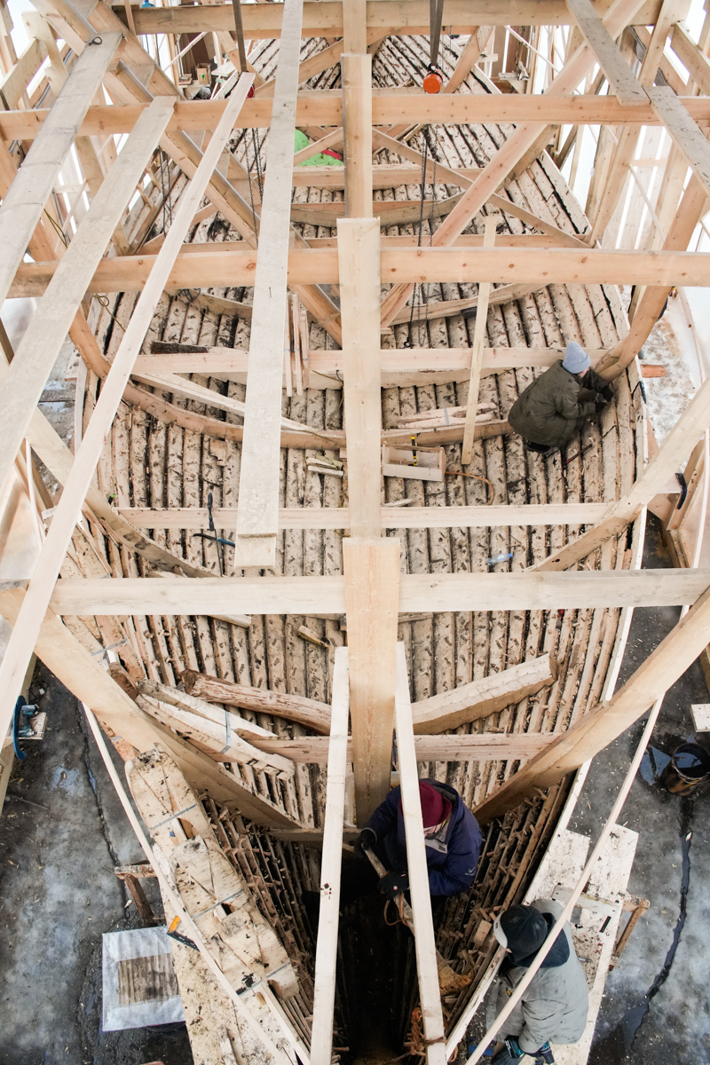 На этой неделе завершают свою работу на верфи волонтёры Александр Лихачёв (лётчик) и Илья Сабанцев (шкипер и предприниматель). Саша и Илья — друзья Лёши Перевалова, приехали к нему в гости. Ни на какую вицу он их не продал, ребята вместе с Лёшей делали обшивку поморской шхуны, только Саша ещё разделил с нами выезд в лес за кокорами, успел буквально в последний вагон.