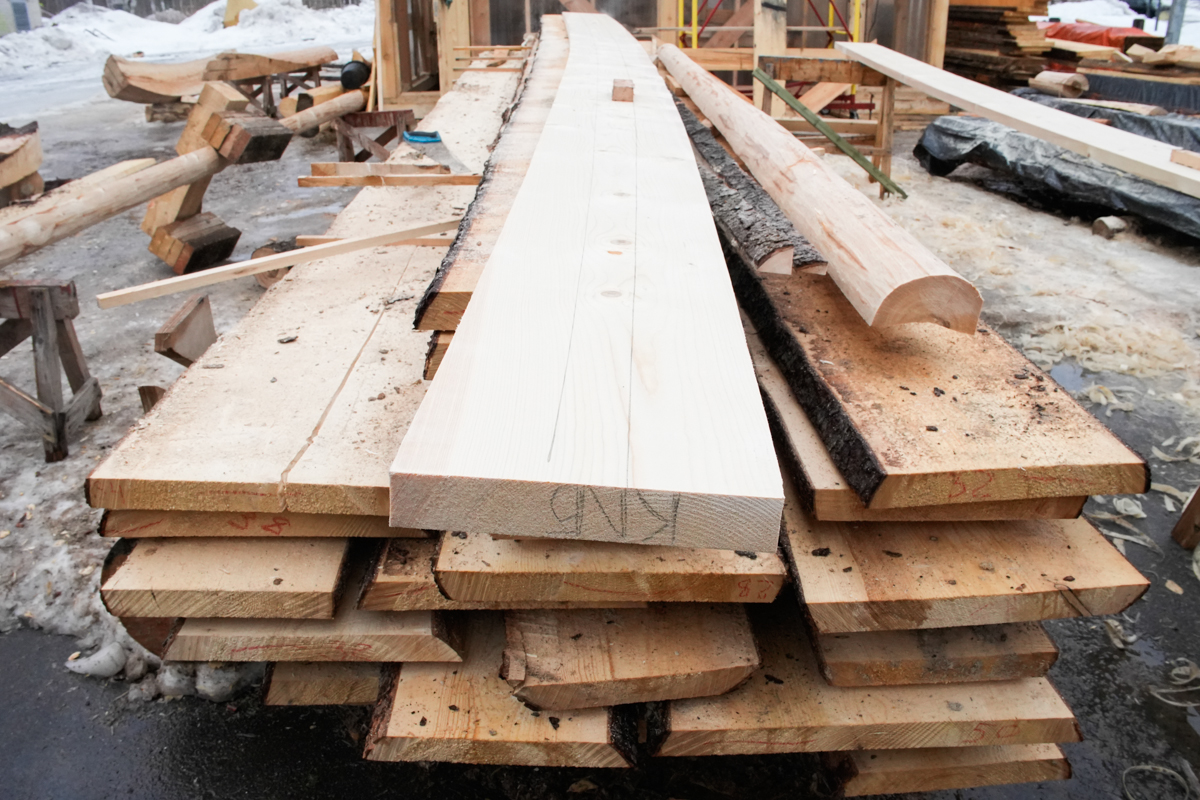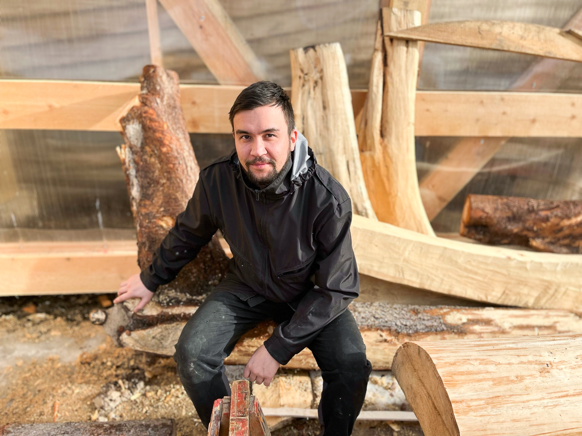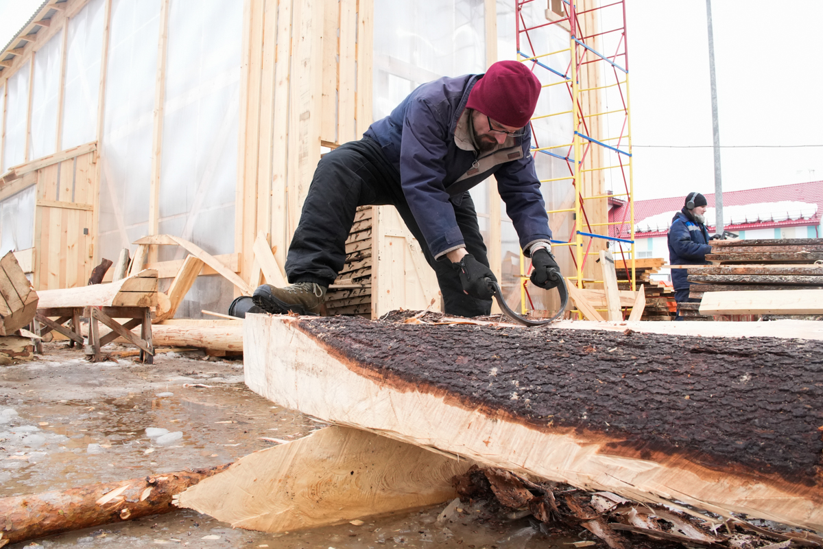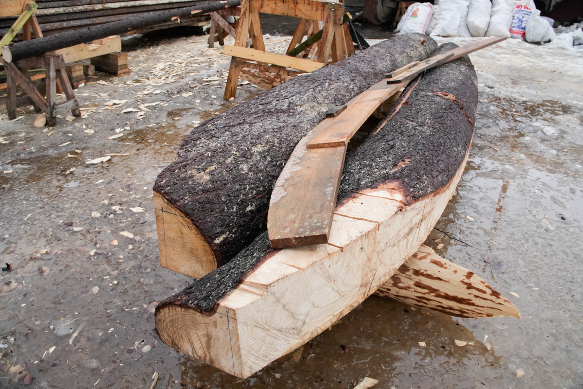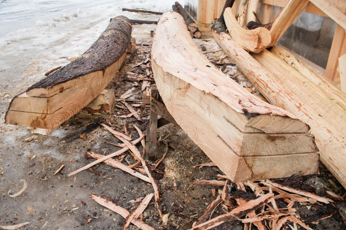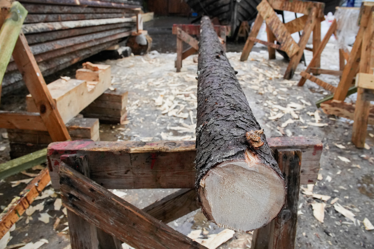 Артём Бывальцев начал делать привальный брус: развалил на него бревно.
