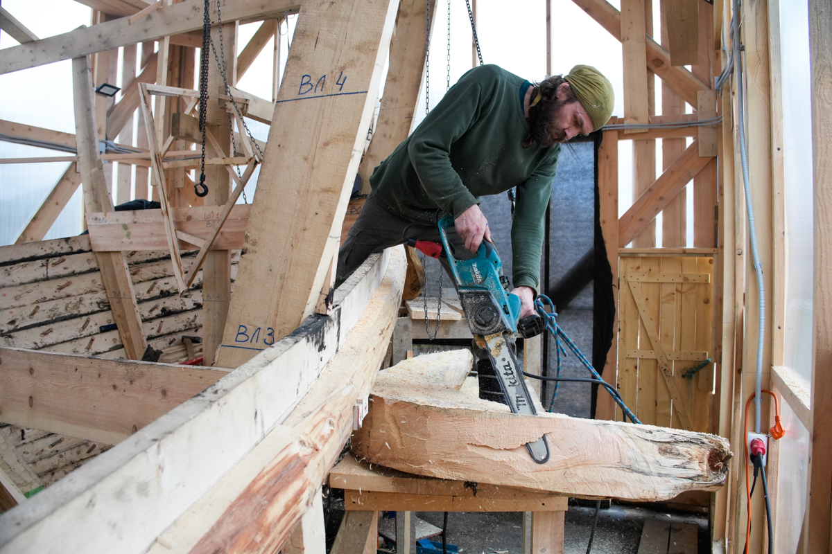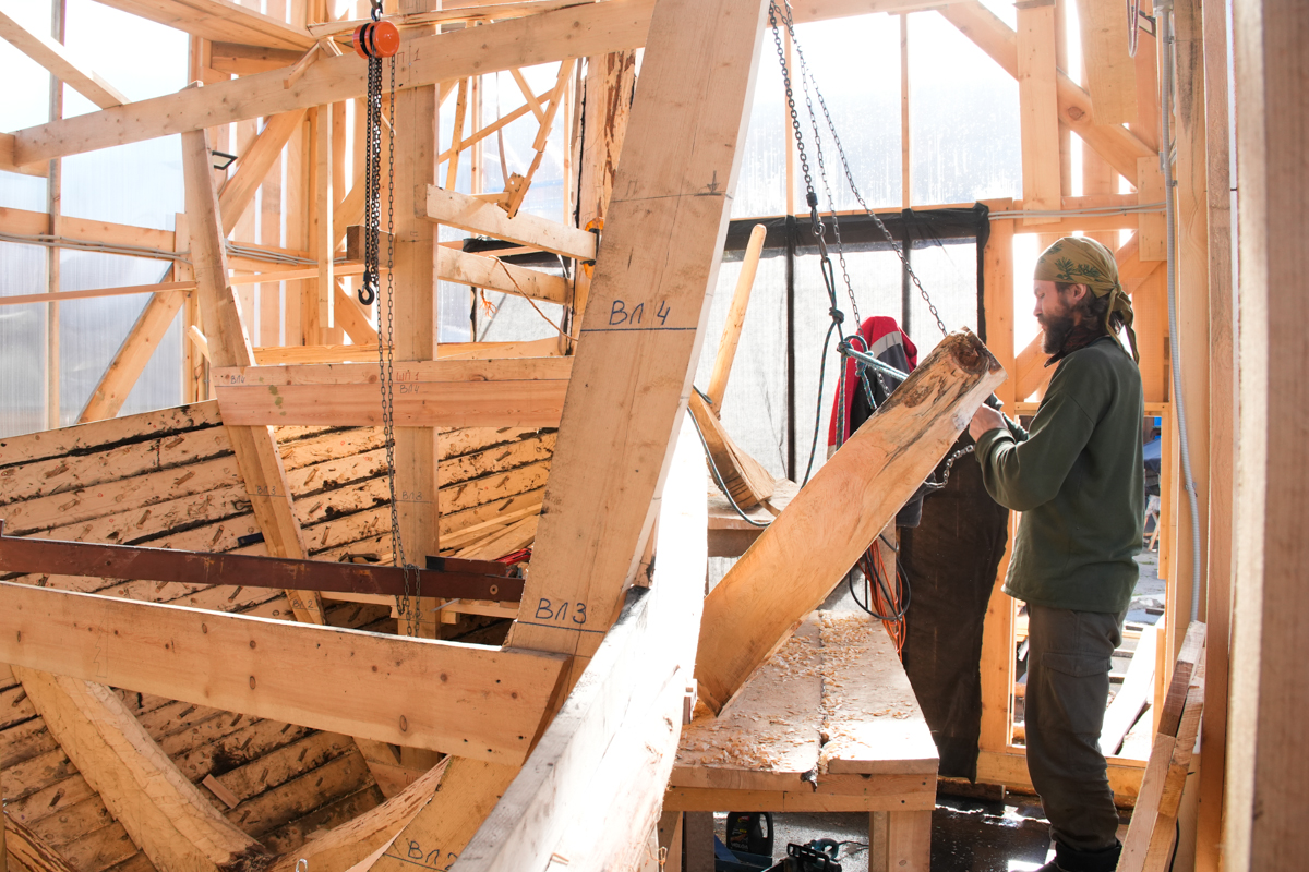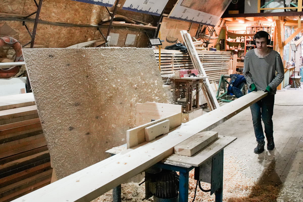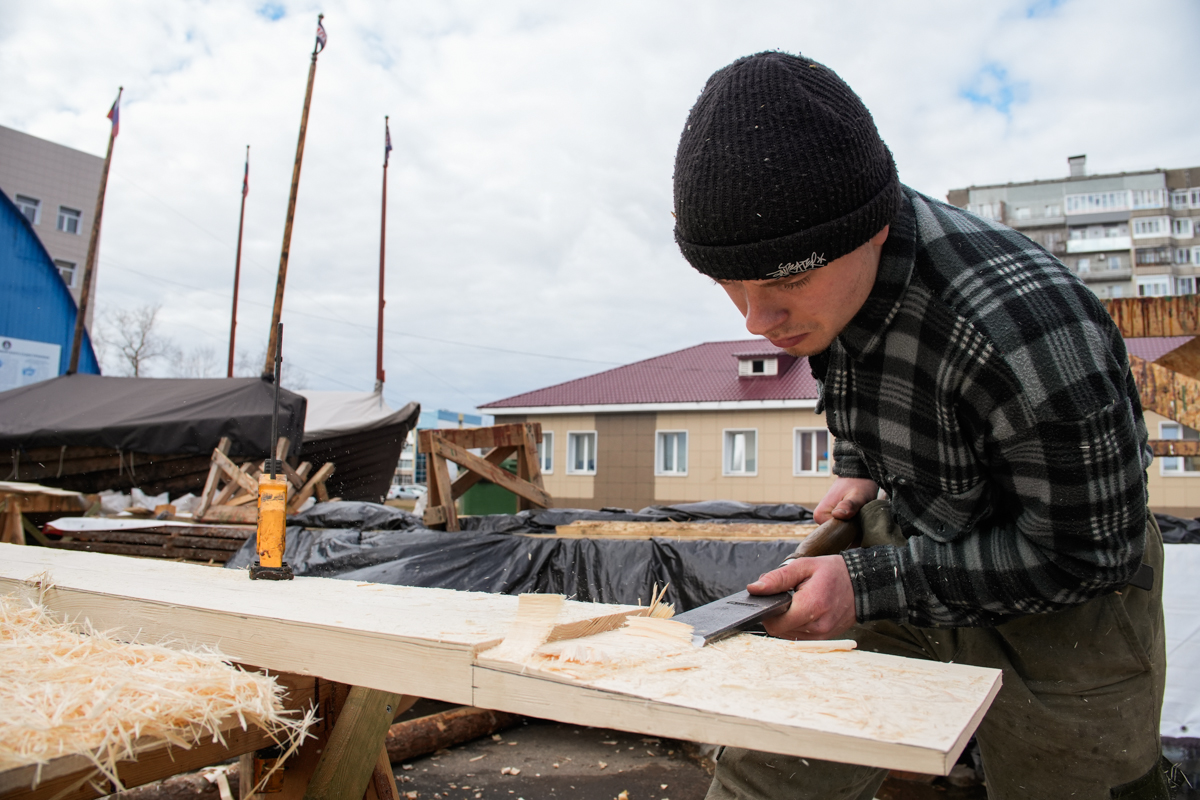 А ещё сегодня на верфь приехал старшеклассник-волонтёр Михаил Белайчук из Москвы. Проведёт за строительством коча все свои весенние каникулы.