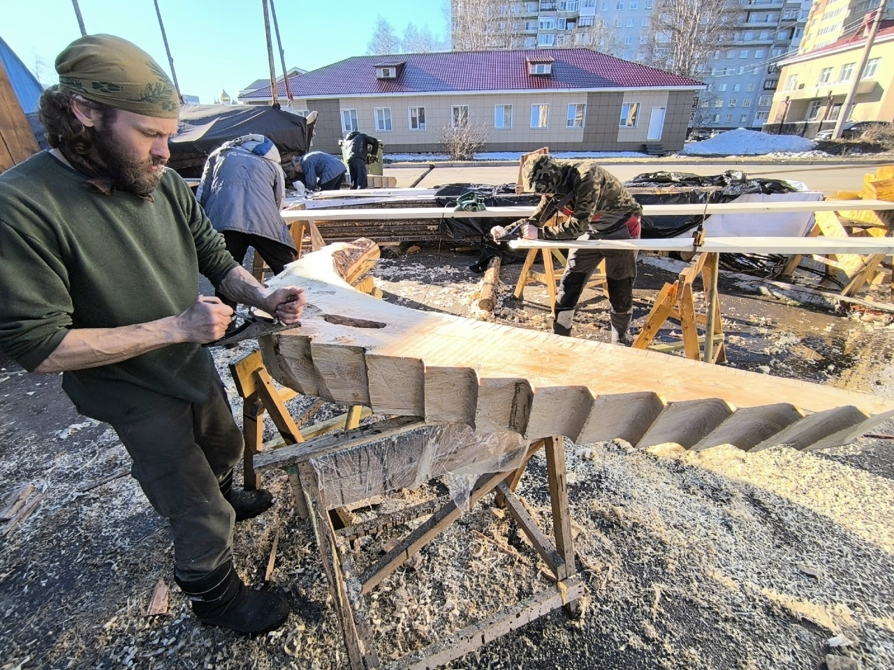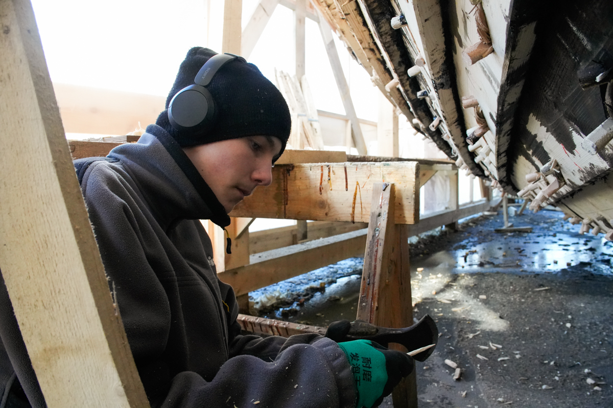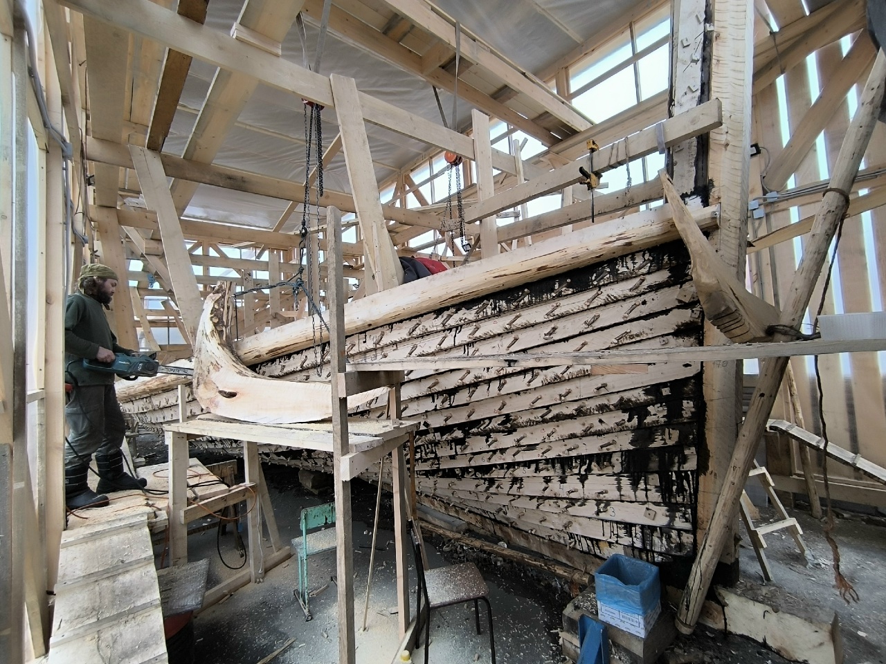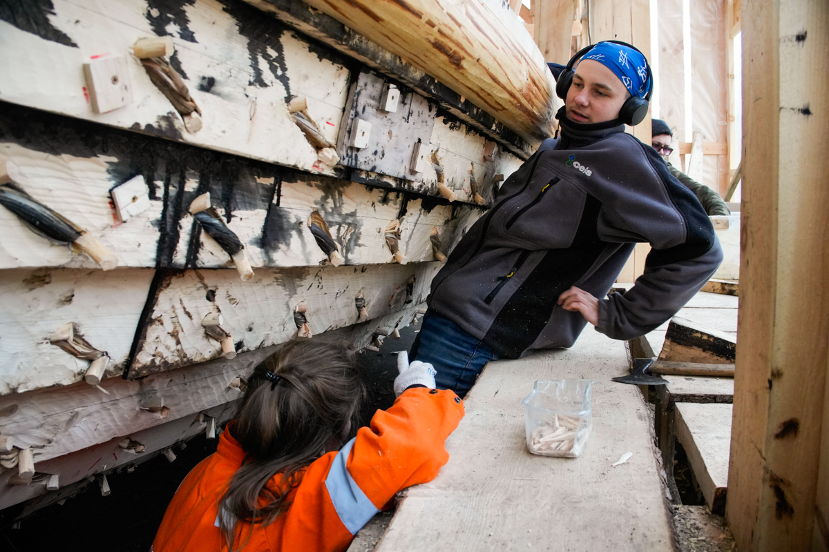 А ещё сегодня на верфь приехал старшеклассник-волонтёр Михаил Белайчук из Москвы. Проведёт за строительством коча все свои весенние каникулы.